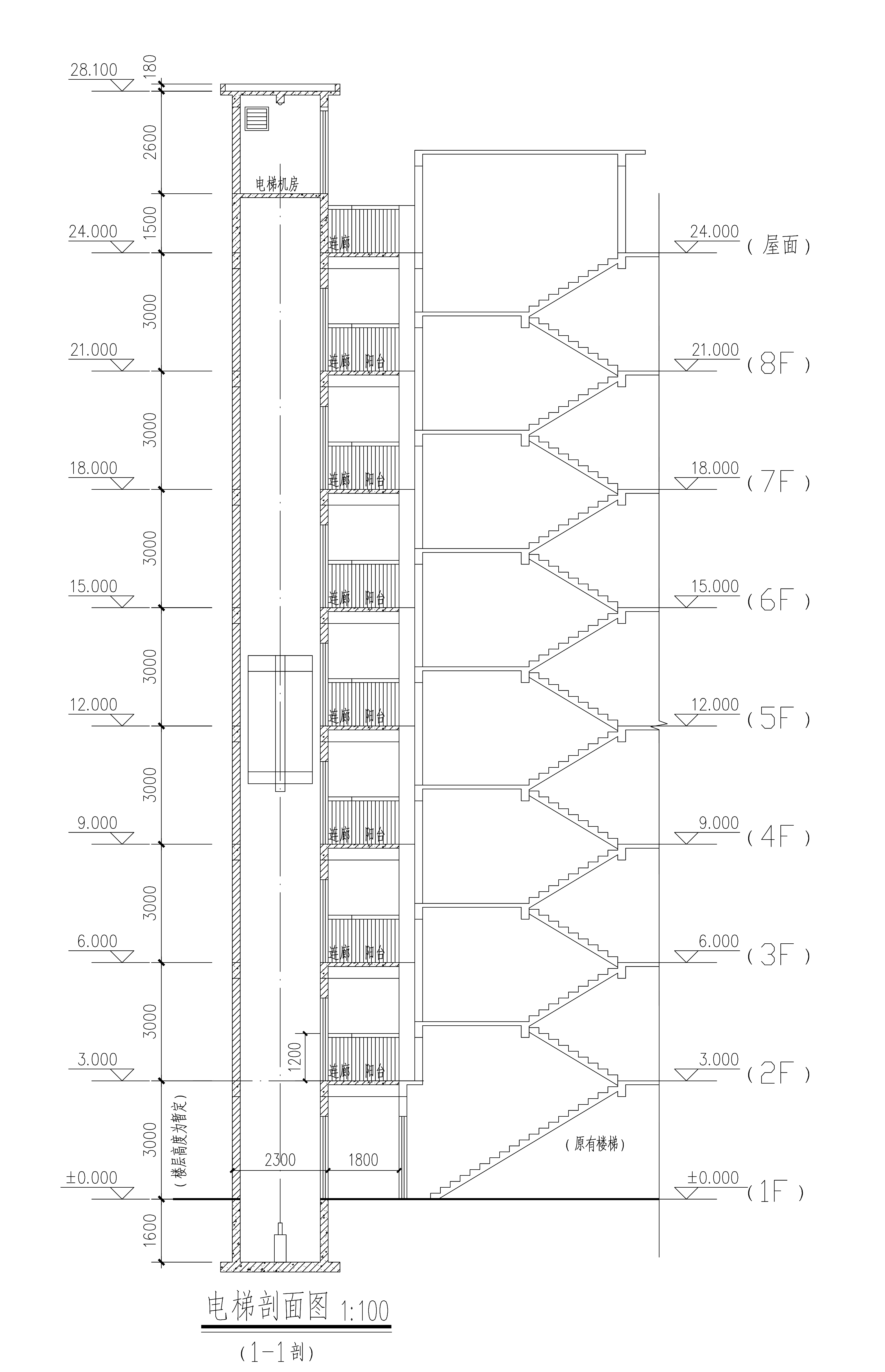 項目概況: 項目已同意批出,同意加建電梯尺寸為2.1米*2.3米,詳見附圖。