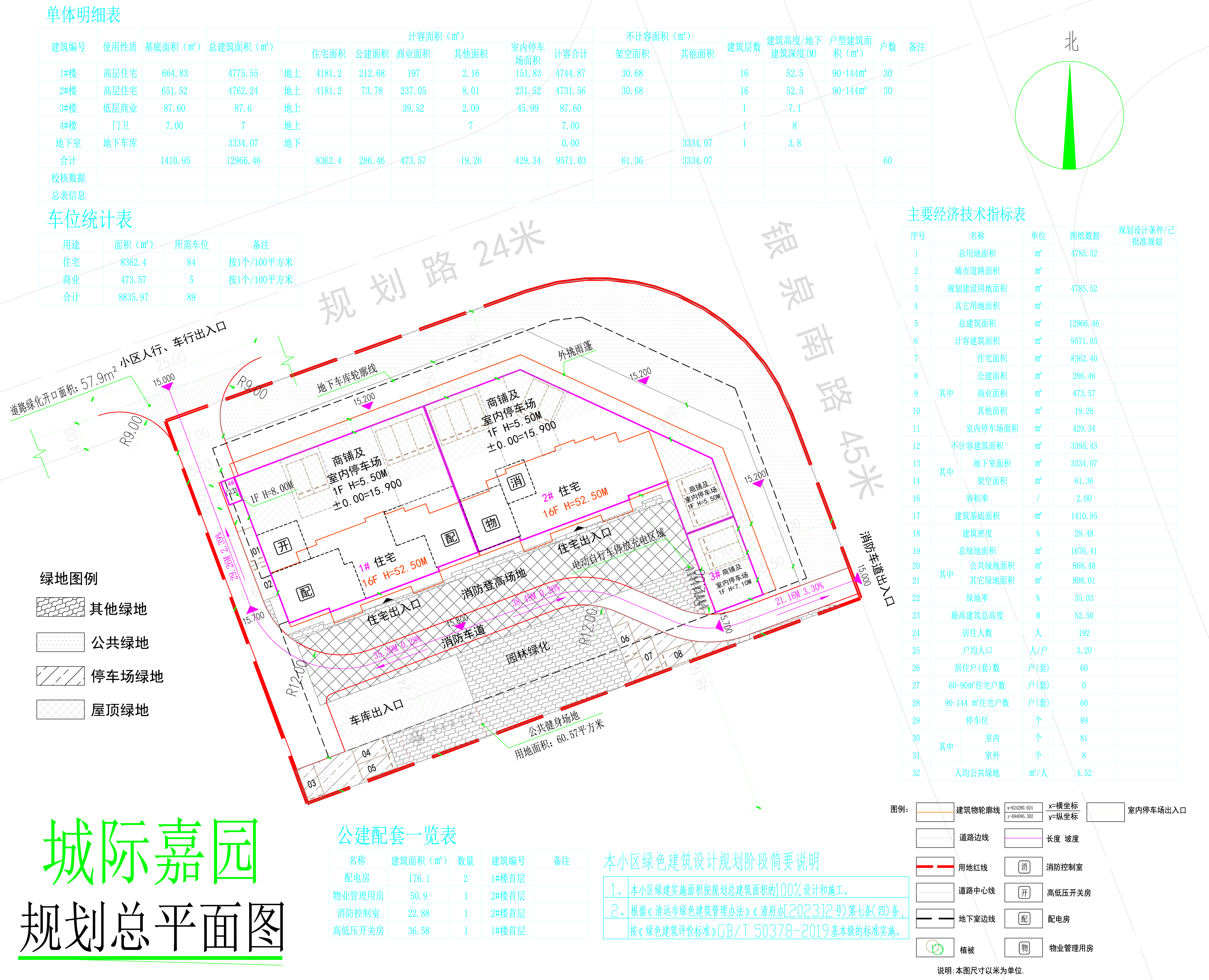 項(xiàng)目概況: 總用地面積為4785.52平方米,總建筑面積為12966.46平方米,容積率為2.0,建筑密度為29.48%,綠地率為35.03%。