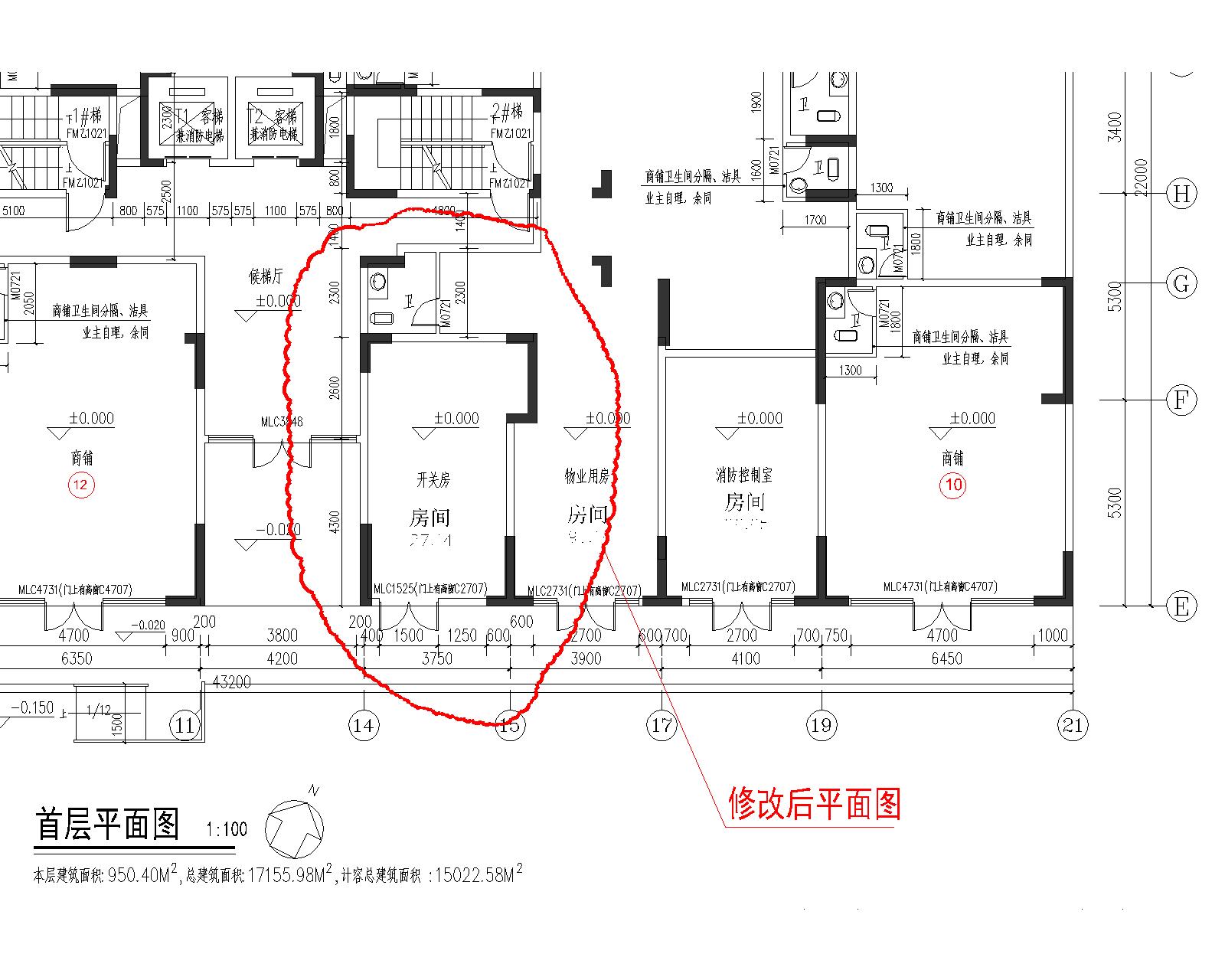 建設(shè)單位報(bào)來(lái)將怡景軒首層第11號(hào)商鋪?zhàn)兏鼮殚_關(guān)房及物業(yè)用房方案,詳見附圖。