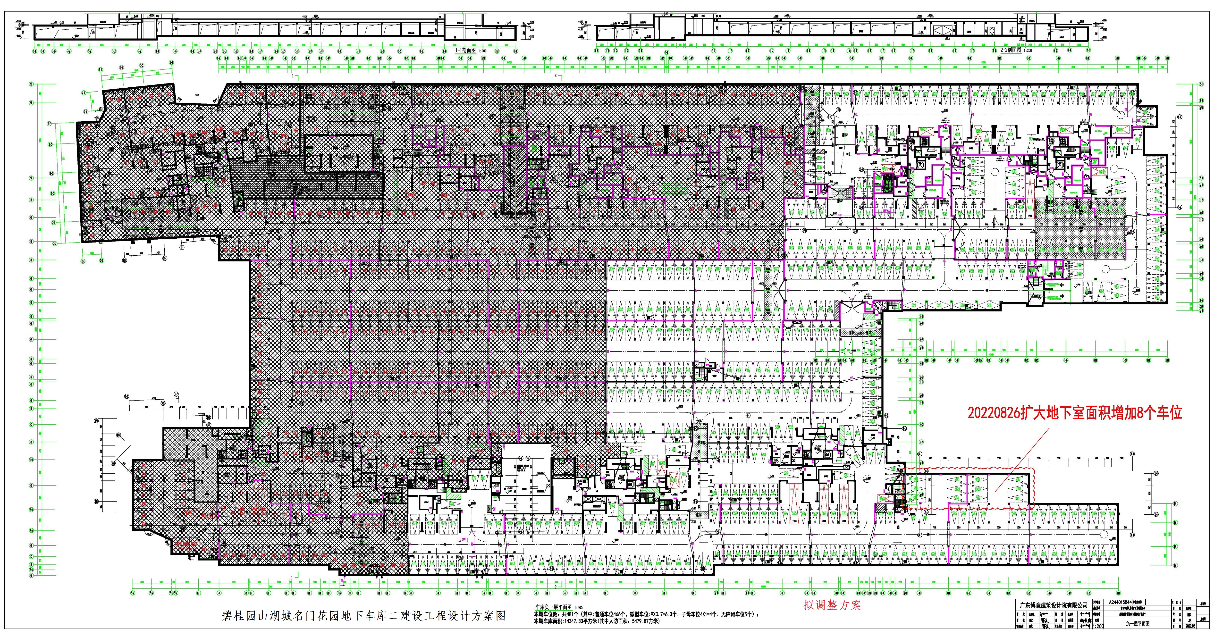 東南角增加車庫面積262.53平方米,車位數(shù)量增加8個。