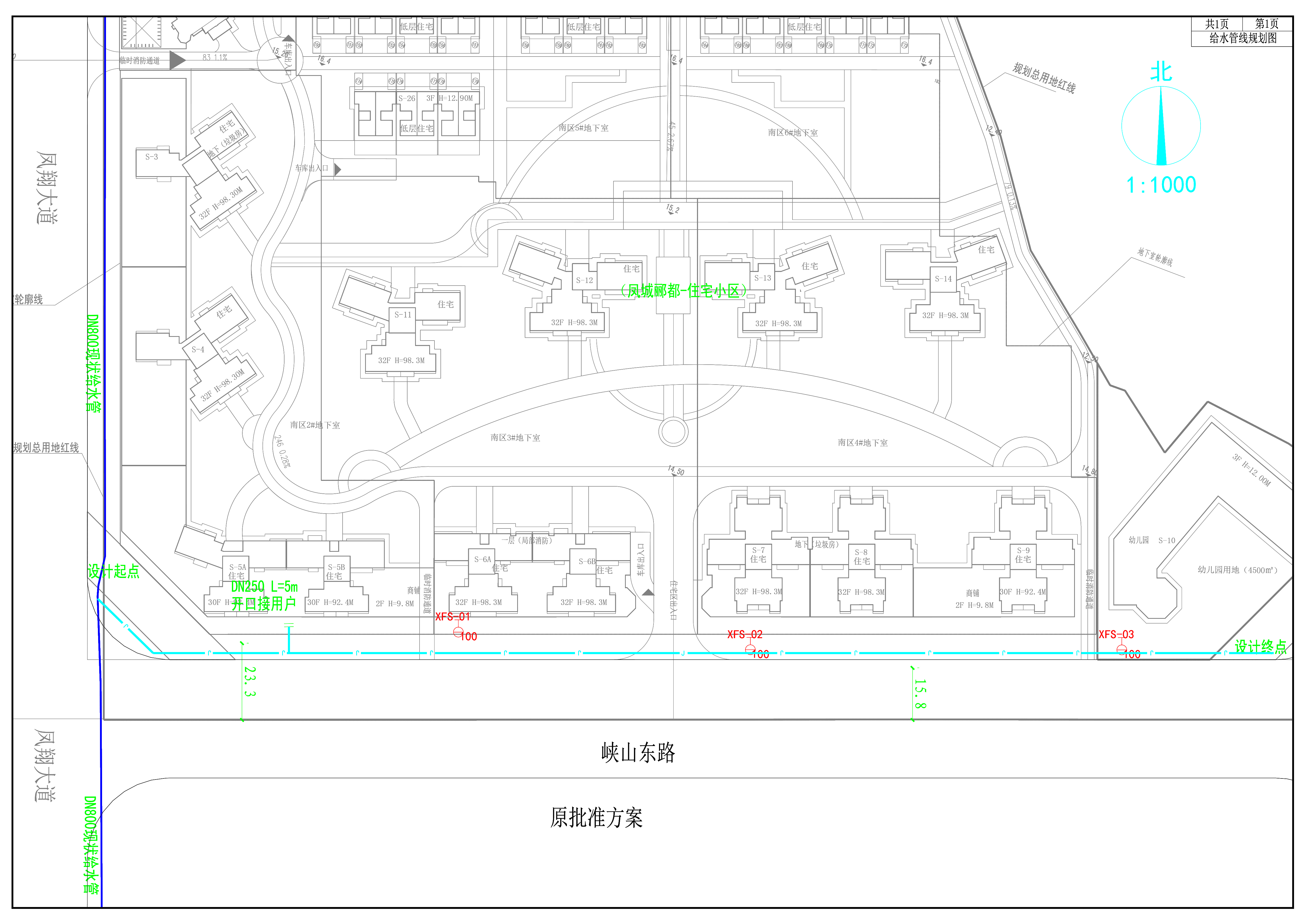 建設(shè)單位報來給水管線調(diào)整方案,擬新建DN400給水管線371米,DN250入戶管線5米,調(diào)整后管線走向與原批出方案一致。