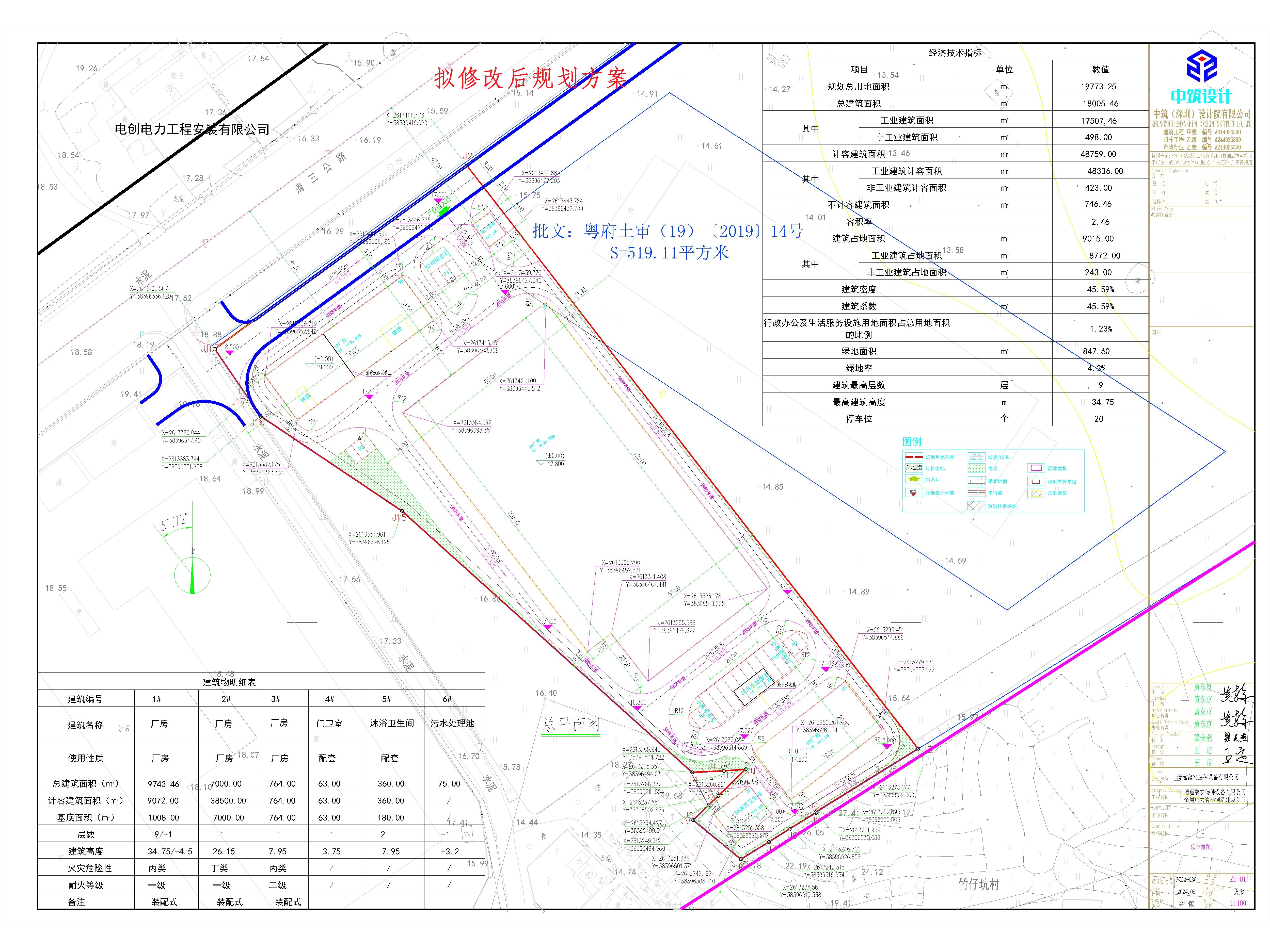 項目修改內(nèi)容:1.規(guī)劃總用地面積19773.25平方米,建筑占地面積9015平方米,總建筑面積18005.46平方米(較原批出規(guī)劃方案減少了7162.54平方米),總計容建筑面積48759.00平方米(較原批出規(guī)劃方案減少了500平方米),不計容建筑面積746.46平方米(較原批出規(guī)劃方案減少了162.54平方米),綠地面積847.6平方米;建筑密度45.59%,容積率2.46(較原批出規(guī)劃方案減少0.3),建筑系數(shù)45.59%,綠地率4.3%,行政辦公及生活服務(wù)設(shè)施用地面積占總用地面積的比例1.23%(較原批出規(guī)劃方案增加0.6%);建筑最高層數(shù)9層,最高建筑高度34.75米(較原批出規(guī)劃方案減少了4.75米),停車位20個。 2.1#廠房的修改內(nèi)容:二層層高由4米修改為3.8米,三至八層層高由原來3米修改為3.4米,九層層高由3米修改為3.6米,總高度由39.5米修改為34.75米(較原批出規(guī)劃方案減少了4.75米); 3.2#廠房、3#廠房首層增加牛腿設(shè)置,并未影響原批出規(guī)劃方案相關(guān)的技術(shù)指標(biāo); 4.4#門衛(wèi)室層高由3.6米修改為3米(較原批出規(guī)劃方案減少了0.6米); 5.5#淋浴衛(wèi)生間平面布局修改,并未影響原批出規(guī)劃方案相關(guān)的技術(shù)指標(biāo); 6.6#污水處理池由于平面的調(diào)整,建筑面積由240平方米修改為75平方米(較原批出規(guī)劃方案減少了165平方米)。