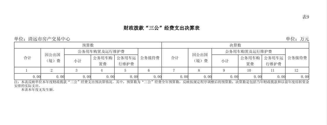 2023年清遠(yuǎn)市房產(chǎn)交易中心財(cái)政撥款“三公”經(jīng)費(fèi)支出決算表公開(kāi)