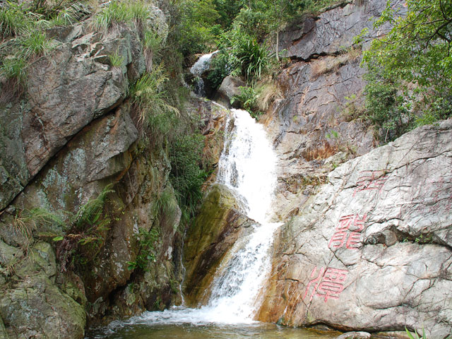 ??? 玉龍?zhí)对撎段挥谂t~(yú)嘴風(fēng)景區(qū)山體的中部,在潭口的下方巨石中,顯現(xiàn)出一條寬約二十多公分,長(zhǎng)約數(shù)丈的白色巖石,如一條玉蛟龍?jiān)谄俨贾酗w,直透谷底。所以叫“玉龍?zhí)丁碑?dāng)?shù)鼐用窳鱾髦诖她埳砩稀翱缛纭本涂蓪?shí)現(xiàn)平步青云,飛黃騰達(dá)的愿望。而下面的池叫“淑女池”。從上往下看,就像一塊鏡子非常漂亮,傳說(shuō)南海龍王的小女兒在7月7日偷偷到人間,看到這里山清水秀,十分流戀,就趁著夜色在這個(gè)池上沐浴,誰(shuí)知恰好在這個(gè)時(shí)候碰上一個(gè)打柴而歸的唱著山歌的樵夫,就對(duì)上幾名山歌,結(jié)果兩人因愛(ài)生情,后生下一對(duì)龍鳳胎,歡歡喜喜地回到娘家,過(guò)著幸福的生活。后來(lái)當(dāng)?shù)卮薜脑捙⒍荚诔黾耷耙箒?lái)到這池里打水回去洗澡,望得生以龍鳳胎。再往前走就是當(dāng)?shù)刈钤嫉陌菁郎駢安小?。?jù)當(dāng)?shù)貕壕用窠榻B,抗日戰(zhàn)爭(zhēng)時(shí) ,國(guó)民黨余部久居此山中,每逢豪賭之時(shí)必祭此“伯公仔”又相當(dāng)靈驗(yàn),十賭九贏,此后該石一直流傳至今。有專家考證,此種拜祭是中國(guó)最為原始的方式之一。