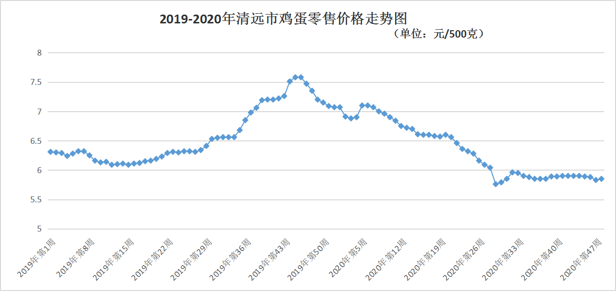 雞蛋5.85元/500克,升0.34%;鴨蛋維持7.68元/500克。