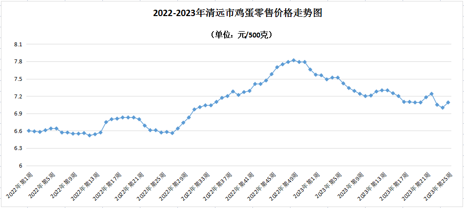 雞蛋零售均價每500克為7.09元,升1.29%;鴨蛋零售均價為8.46元,降0.12%。
