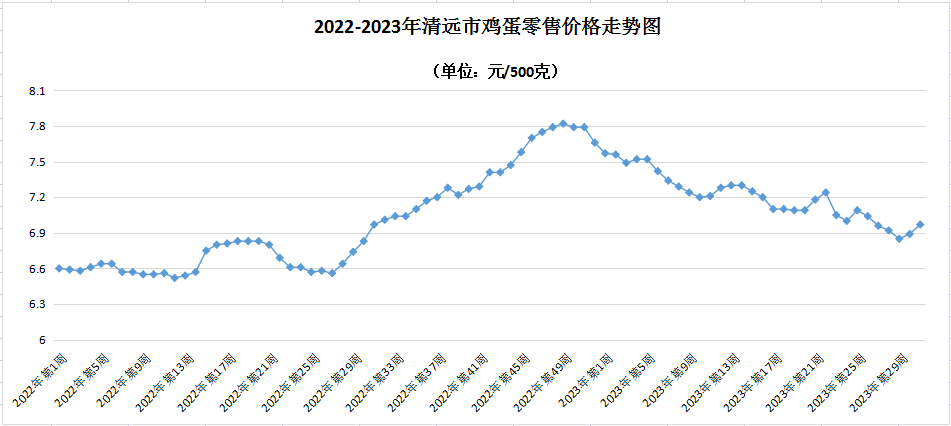 雞蛋零售均價(jià)每500克為6.97元,升1.16%;鴨蛋零售均價(jià)為8.49元,升0.47%。