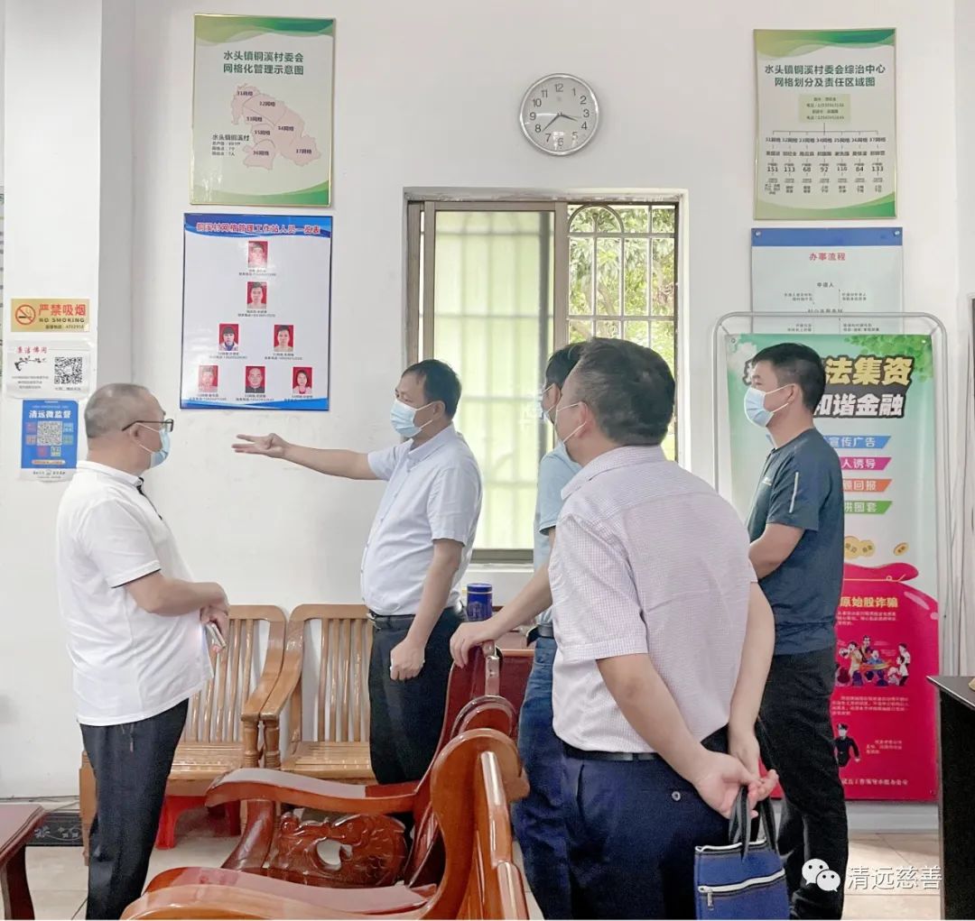 5月19號(hào)下午,清遠(yuǎn)市民政局黨組成員、中共清遠(yuǎn)市社會(huì)組織委員會(huì)專職副書記、清遠(yuǎn)市慈善總會(huì)常務(wù)副會(huì)長(zhǎng)林光強(qiáng),清遠(yuǎn)市民政局慈善事業(yè)促進(jìn)和社會(huì)工作科科長(zhǎng)、清遠(yuǎn)市慈善總會(huì)秘書長(zhǎng)徐建海,佛岡縣民政局副局長(zhǎng)、縣慈善會(huì)常務(wù)副會(huì)長(zhǎng)黃福堅(jiān),佛岡縣基層政權(quán)和社會(huì)組織股股長(zhǎng)唐彩環(huán)一行前往佛岡縣水頭鎮(zhèn)銅溪村進(jìn)行廣東省“幸福家園”村社互助工程工作實(shí)地考察。
