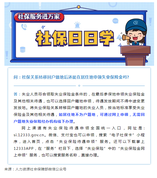 【社保日日學(xué)】社保關(guān)系轉(zhuǎn)回戶籍地,還能在居住地申領(lǐng)失業(yè)保險(xiǎn)金嗎?