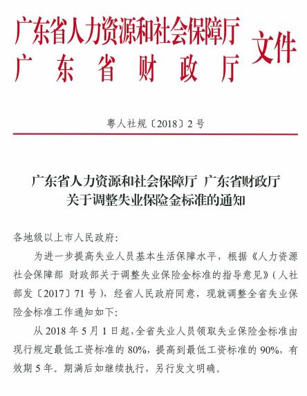 關(guān)于調(diào)整失業(yè)保險(xiǎn)金標(biāo)準(zhǔn)的通知(粵人社規(guī)[2018]2號)