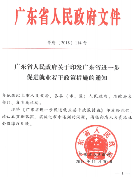 廣東省人民政府關(guān)于印發(fā)廣東省進(jìn)一步促進(jìn)就業(yè)若干政策措施的通知(粵府[2018]114號(hào))