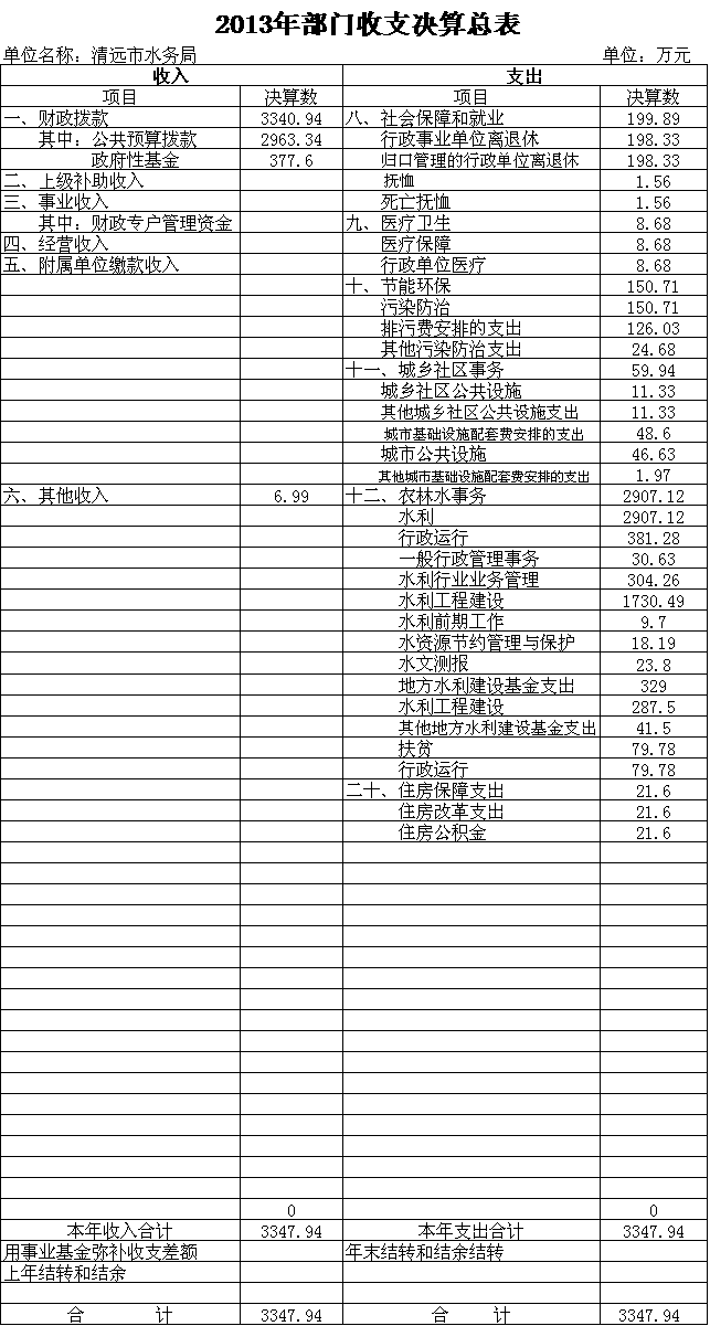 清遠(yuǎn)市水務(wù)局2013年部門(mén)收支決算總表