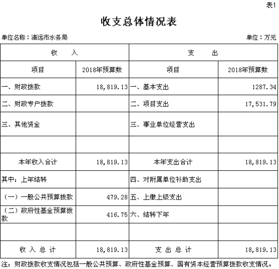 2018年清遠(yuǎn)市水務(wù)局部門預(yù)算