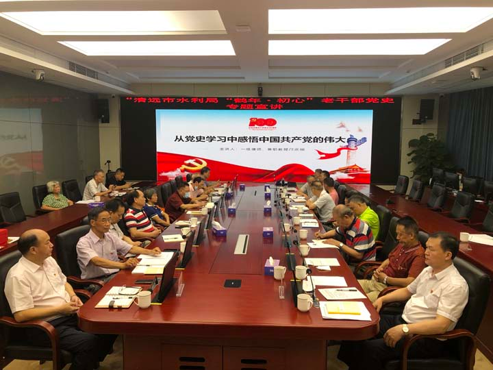 為慶祝建黨100周年,深入開(kāi)展黨史教育,營(yíng)造良好的黨建氛圍,6月28日,清遠(yuǎn)市水利局老干黨支部開(kāi)展“鶴年·初心”老干部黨史專題宣講暨“光榮在黨50年”紀(jì)念章頒發(fā)儀式,并邀請(qǐng)了市律師協(xié)會(huì)會(huì)長(zhǎng)、廣東正鑫律師事務(wù)所一級(jí)律師、華南師范大學(xué)兼職教授、“鶴年·初心”老干部宣講團(tuán)成員鄺慶剛開(kāi)展黨史學(xué)習(xí)教育宣講。局黨組成員、總工程師林曉生出席并講授黨史學(xué)習(xí)專題黨課,局機(jī)關(guān)黨委書(shū)記、四級(jí)調(diào)研員、工會(huì)主席詹正大主持,局機(jī)關(guān)老干支部黨員以及離退休干部代表參加此次座談會(huì)。