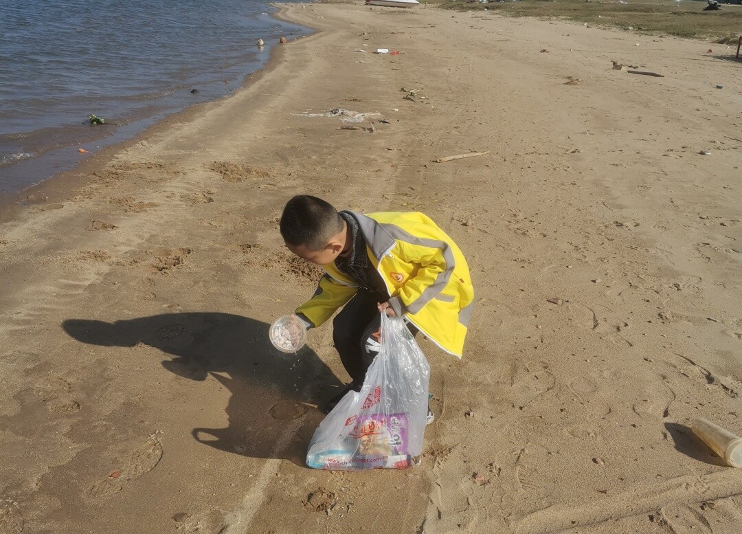 說做就做。11月6日清晨,吳譽驍在爸爸媽媽的帶領(lǐng)下來到清遠(yuǎn)石角鎮(zhèn)北江大堤的江灘邊,開始了我們的“凈灘”行動......為了讓更多的人加入到保護(hù)河流生態(tài)環(huán)境的行動中來,11月10日,吳譽驍利用學(xué)校紅領(lǐng)巾廣播站這個平臺,向?qū)W校同學(xué)們發(fā)出“保護(hù)北江母親河”的倡議書,號召同學(xué)們樹立綠色生態(tài)理念,一起做保護(hù)河湖的倡導(dǎo)者和行動者......