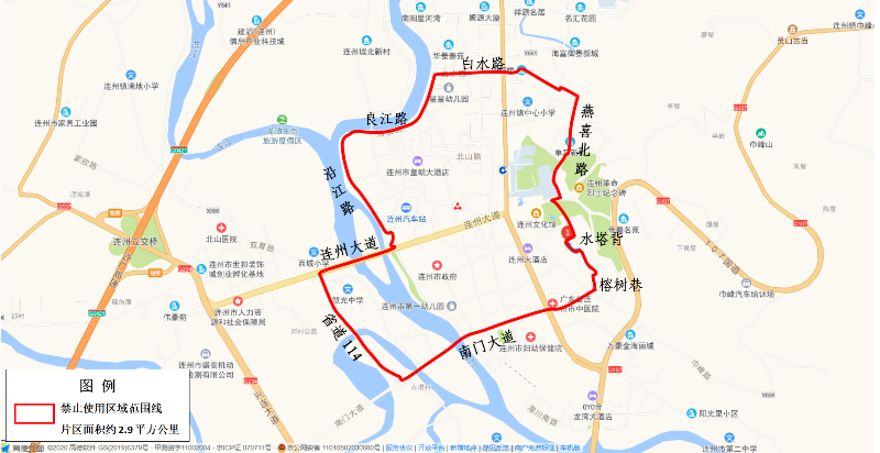 附圖3 清遠(yuǎn)市禁止使用高排放非道路移動(dòng)機(jī)械的區(qū)域范圍圖——連州片區(qū)