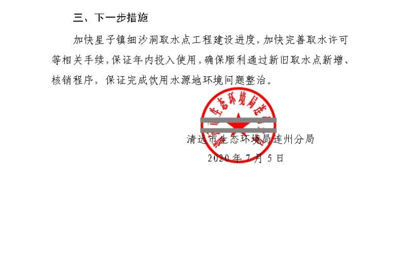 關(guān)于連州市“千噸萬人”鄉(xiāng)鎮(zhèn)級(jí)及以下集中式飲用水水源地環(huán)境問題整治情況報(bào)告(清遠(yuǎn)市生態(tài)環(huán)境局連州分局)