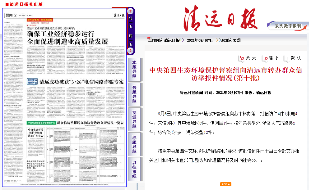 【清遠(yuǎn)日報(bào)】中央第四生態(tài)環(huán)境保護(hù)督察組向清遠(yuǎn)市轉(zhuǎn)辦群眾信訪舉報(bào)件情況(第十批)