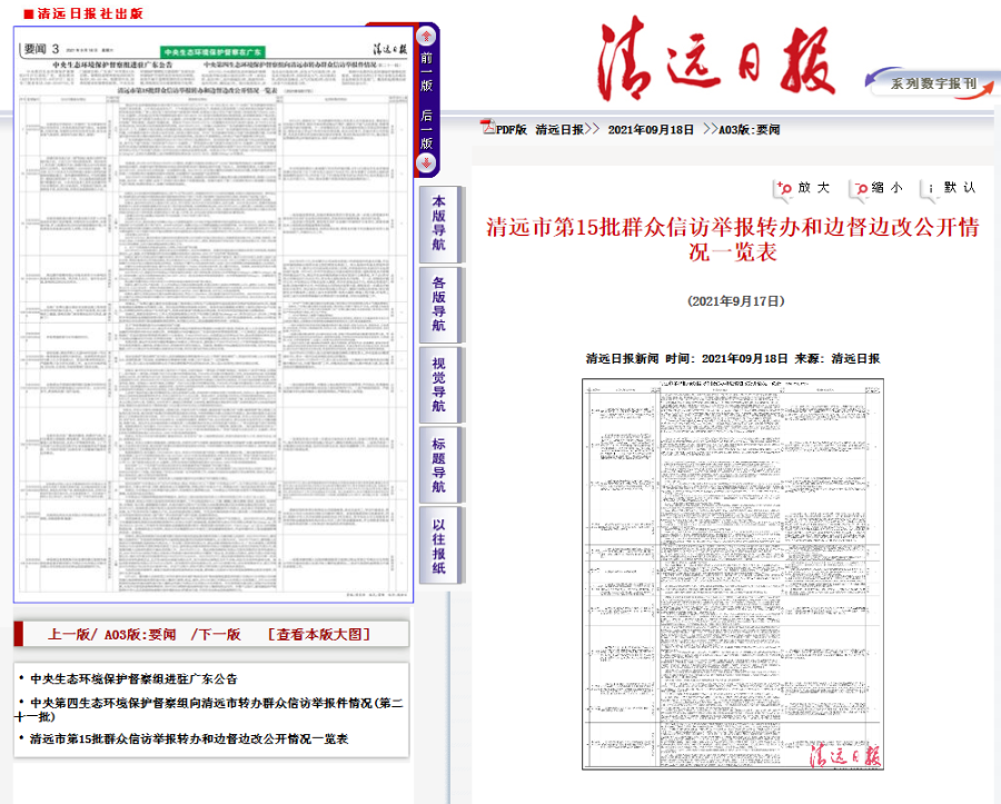 【清遠(yuǎn)日報】清遠(yuǎn)市第15批群眾信訪舉報轉(zhuǎn)辦和邊督邊改公開情況一覽表 (2021年9月17日)