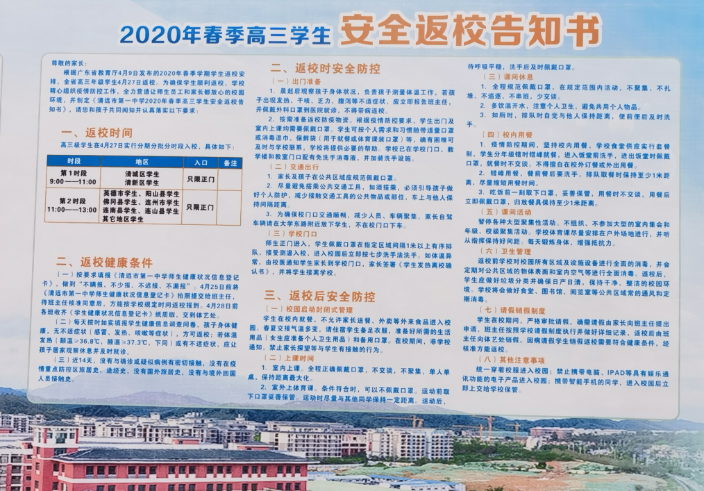 按照省的統(tǒng)一部署要求,4月27日,我市高三、初三年級學生返校。馬正勇一行首先來到清遠市第一中學實驗學校,深入課室、洗手間、宿舍、餐廳、健康觀察室等,檢查疫情防控和防疫物資保障工作。馬正勇強調(diào),細節(jié)才是防疫的關(guān)鍵,要求學校在嚴密做好師生健康動態(tài)登記管理的同時,從細節(jié)入手,例如衛(wèi)生間在配備酒精時,還要配備紙巾等,公共領(lǐng)域要設(shè)置腳踏開關(guān)沖水設(shè)施,對扶手、門把手這些細節(jié)一定要做好消毒,中央空調(diào)不能開。市教育局要發(fā)布通知,告知學生、家長、教師員工“五一”期間最好能留在清遠,精準嚴密構(gòu)筑校園安全防線,真正讓學生和教師安心、讓家長和社會放心。