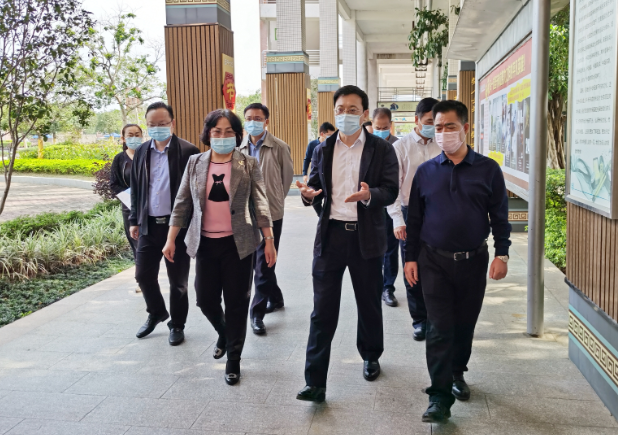 馬正勇(中)在清遠市第一中學檢查學生返校準備工作