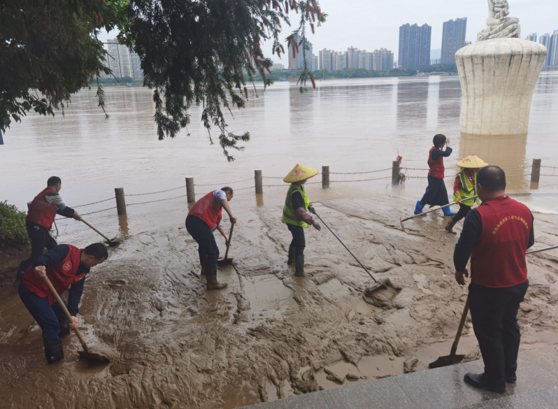 清遠(yuǎn)市退役軍人達(dá)飛志愿服務(wù)隊(duì)在江濱公園開(kāi)展汛后清淤志愿活動(dòng)