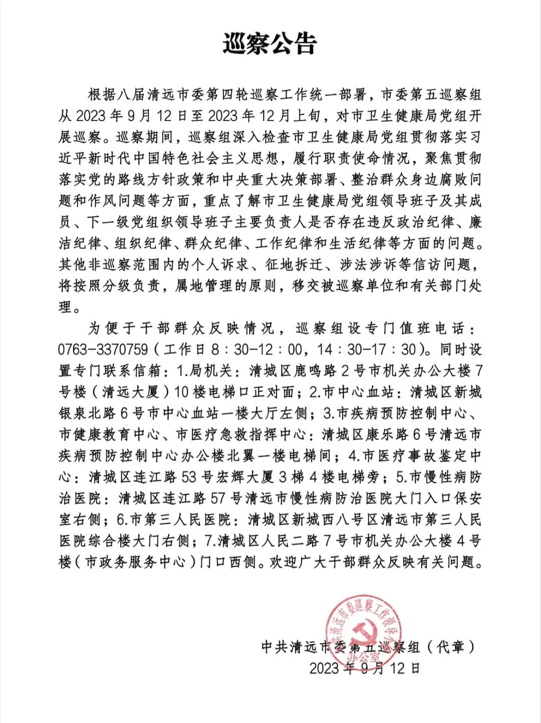 巡察公告