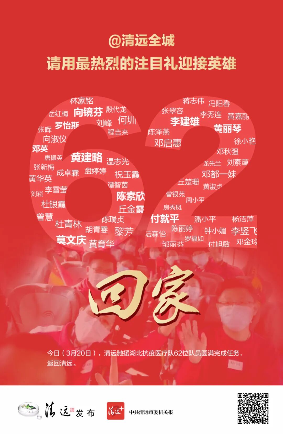 62人將一同返回清遠!