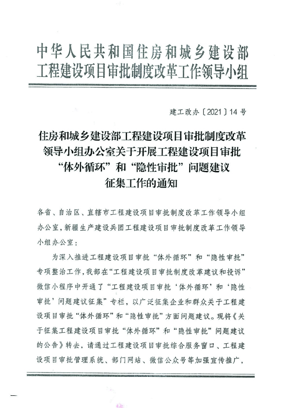 關(guān)于征集工程建設(shè)項目審批“體外循環(huán)”和“隱性審批”問題建議的公告