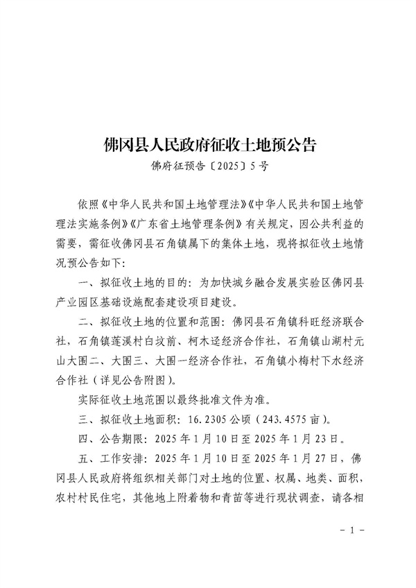 佛岡縣人民政府征收土地預(yù)公告(佛府征預(yù)字〔2025〕5號)