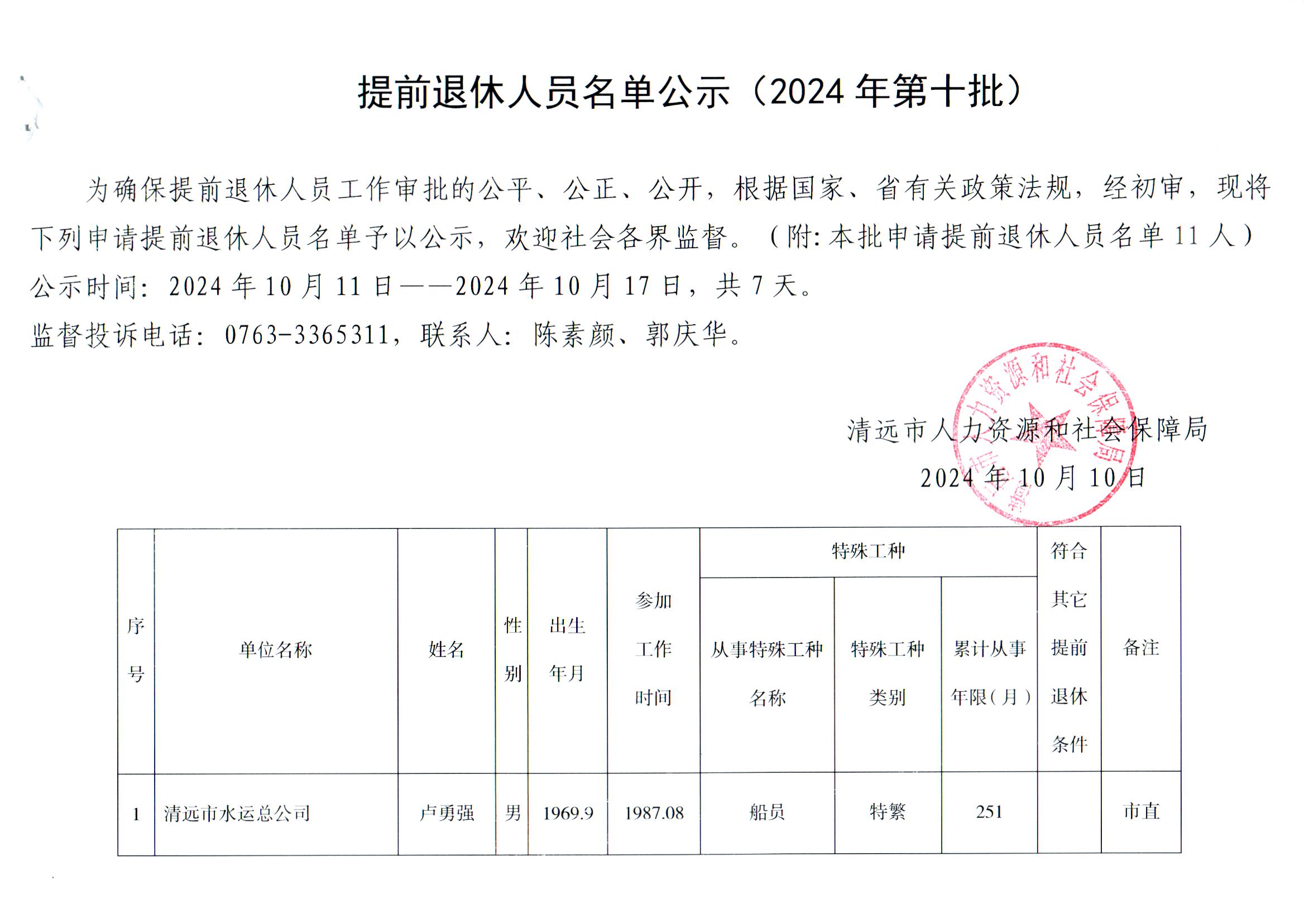 提前退休人員名單公示(2024年第十批)