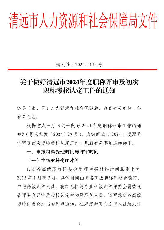 關(guān)于做好清遠(yuǎn)市2024年度職稱評審及初次職稱考核認(rèn)定工作的通知