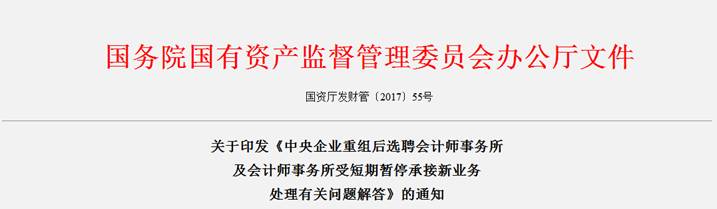 中央企業(yè)重組后選聘會計師事務所及會計師事務所受短期暫停承接新業(yè)務處理有關問題解答