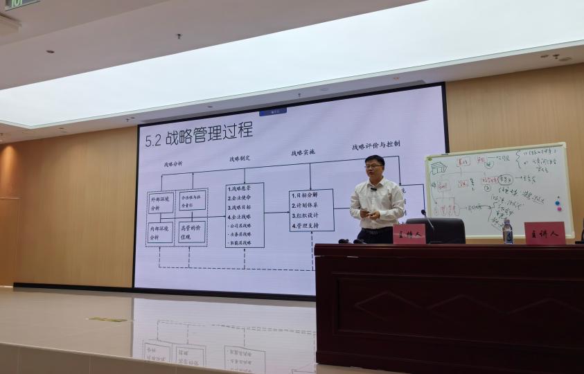 吳小節(jié)以“大變局時代戰(zhàn)略管理”為題展開授課,巧妙地以“世界大變局和工業(yè)革命”為切入點,引出工業(yè)化本質與管理重點,通過生動的實踐案例,重點講述了管理的角色、對象、標準、目的。在戰(zhàn)略決策方面,吳小節(jié)提出了包含產(chǎn)業(yè)結構分析、資源基礎觀以及高管團隊認知與激勵等方面的整合思維方式,并就戰(zhàn)略管理過程、環(huán)境因素影響產(chǎn)業(yè)企業(yè)的機制、競爭對手推斷模型等內(nèi)容展開詳細論述,授課內(nèi)容豐富,為國資國企戰(zhàn)略管理提供了新的思路和指導。