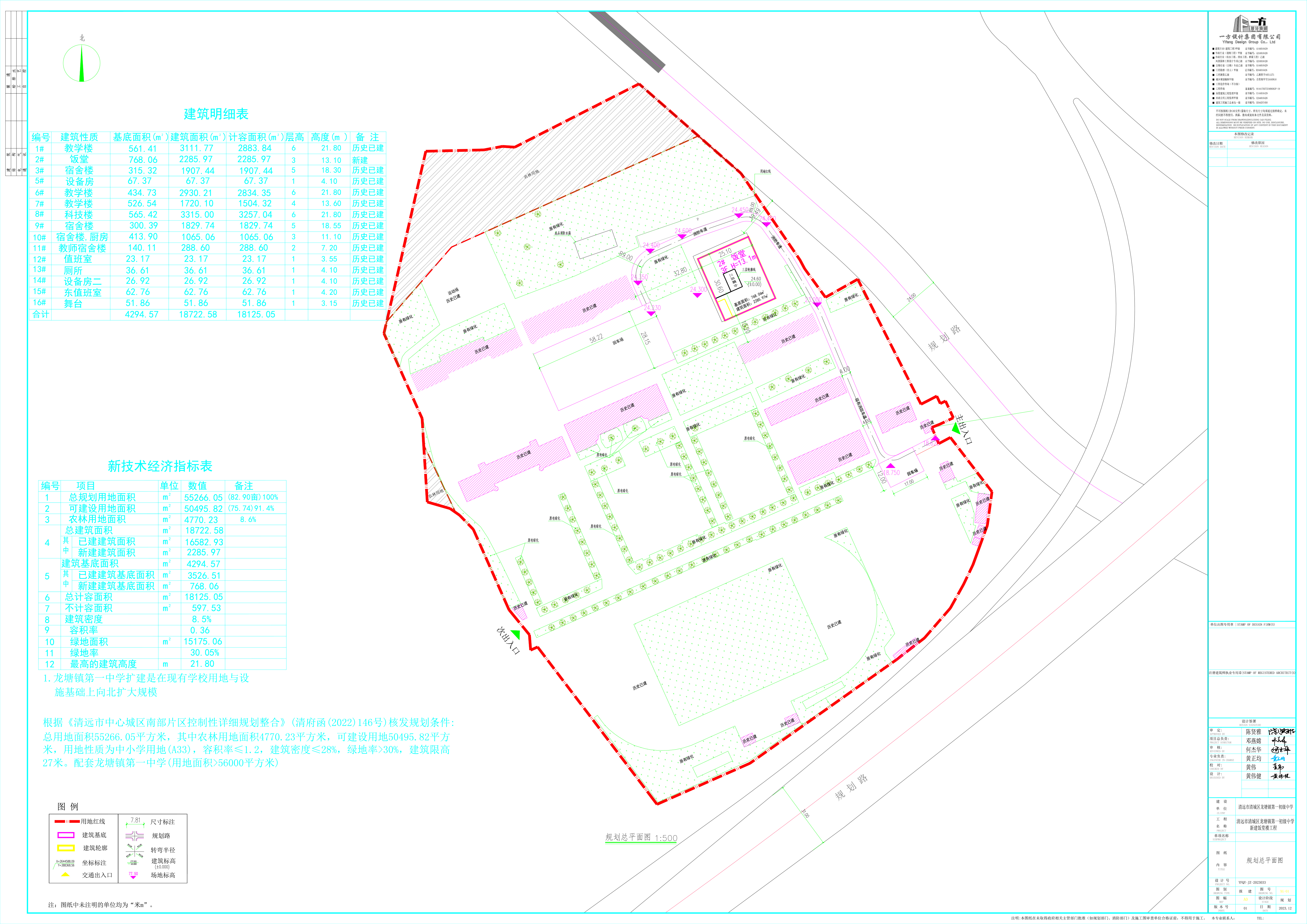項(xiàng)目概況: 同意清遠(yuǎn)市清城區(qū)龍?zhí)伶?zhèn)第一初級中學(xué)新建飯?zhí)脴枪こ炭偲矫娣桨福河玫孛娣e55266.05平方米,規(guī)劃建設(shè)面積50495.85平方米,總建筑面積18722.58平方米,總計(jì)容面積18125.05平方米,基底面積4294.57平方米,容積率0.36,建筑密度8.5%,綠地率30.05%,建筑高度21.80米。詳見附圖。