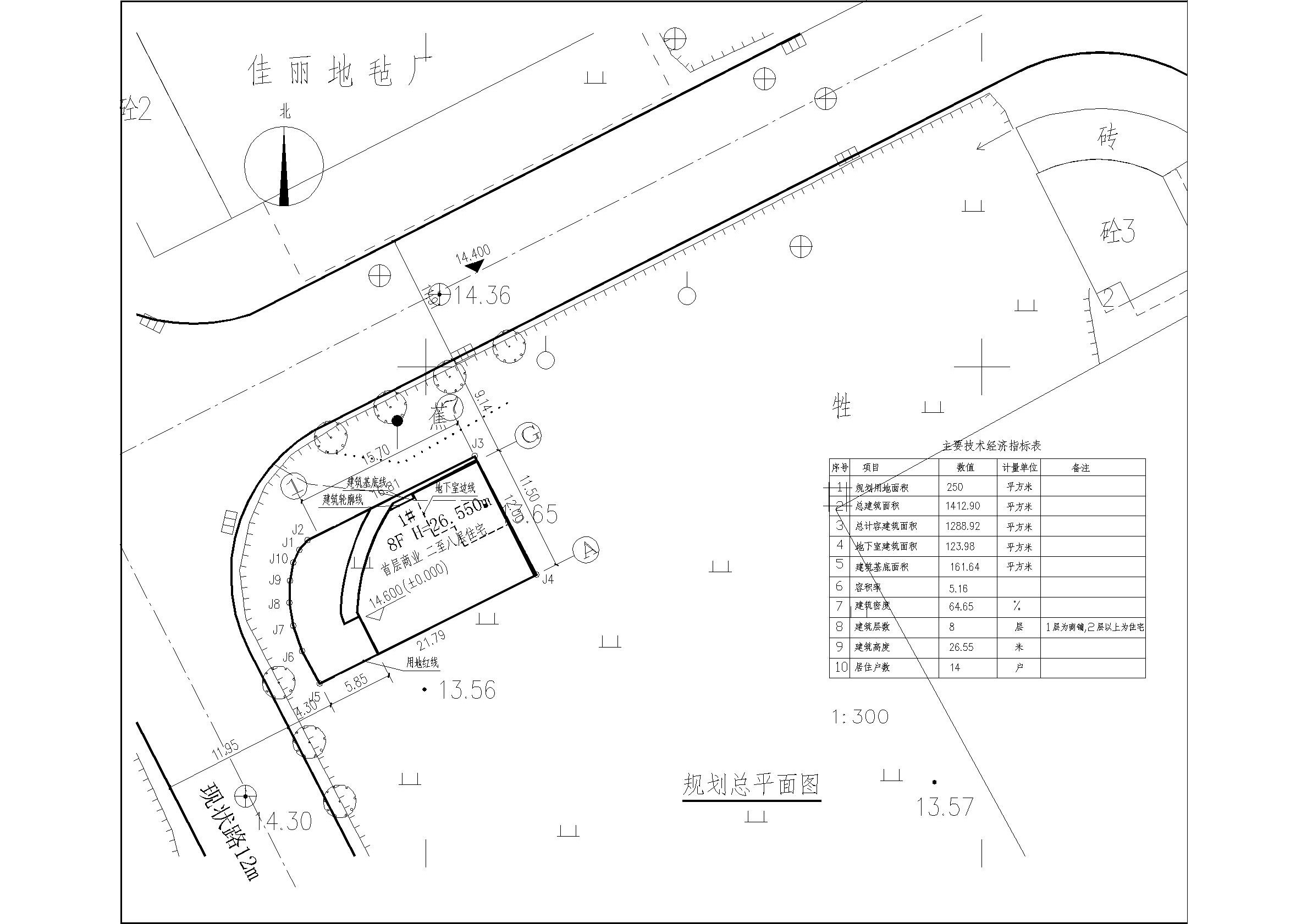 項目概況: 建筑基底占地面積161.64平方米 ,總建筑面積1412.9平方米,計容建筑面積1288.92平方米,不計容面積123.98平方米,建筑密度64.65%,地上建筑高度26.55米。