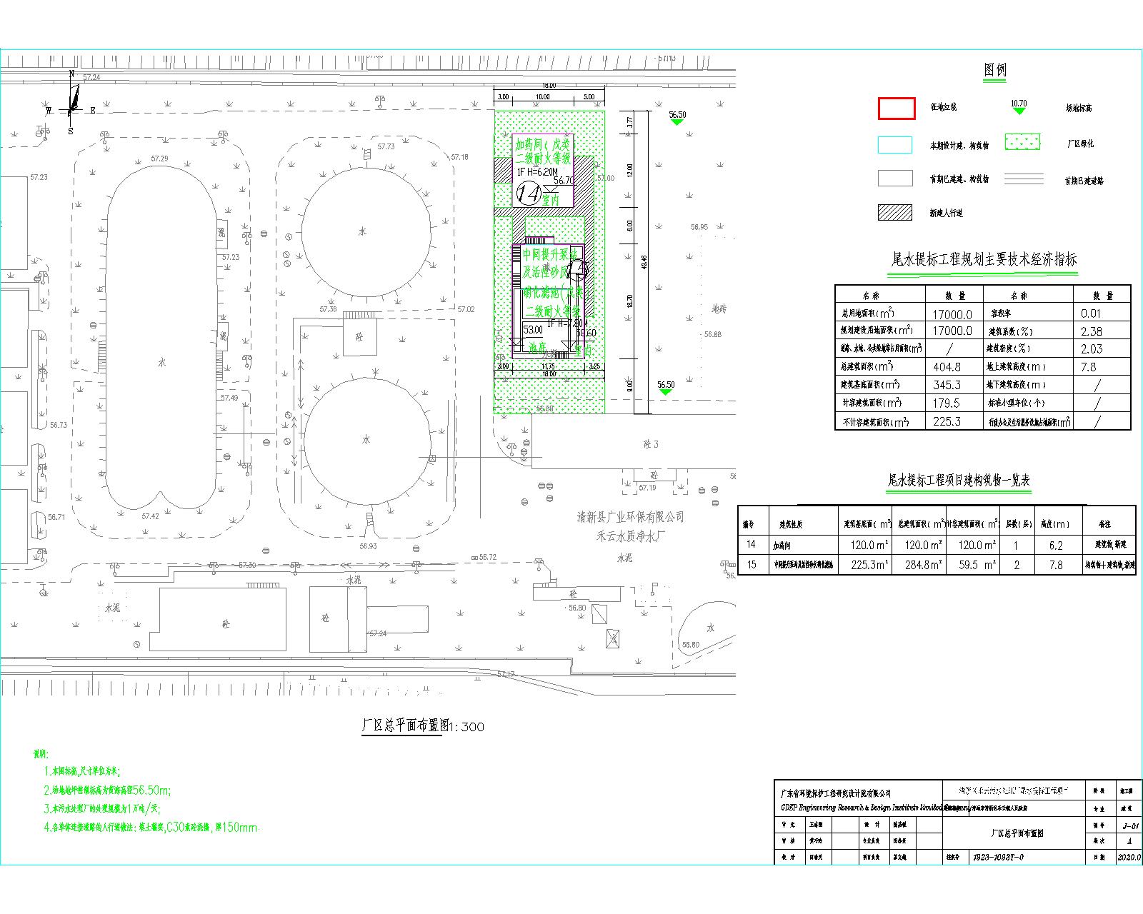 現(xiàn)報(bào)來清新區(qū)禾云污水處理廠尾水提標(biāo)工程(加藥間、中間提升泵站及活性砂反硝化濾池)建設(shè)工程設(shè)計(jì)方案:總建筑面積404.8平方米,計(jì)容建筑面積179.5平方米,總建筑基底面積345.3平方米,地上建筑高度7.8米,具體指標(biāo)如下:1、加藥間:建筑基底面積120平方米,建筑面積120平方米,計(jì)容建筑面積120平方米,層數(shù)1層,建筑高度6.2米(含0.2米地坪標(biāo)高);2、中間提升泵站及活性砂反硝化濾池:建筑基底面積225.3平方米,建筑面積284.8平方米,計(jì)容建筑面積59.5平方米,層數(shù)2層,地上1層,地上建筑高度7.8米,地下-1層,構(gòu)筑物地下深度4.1米。