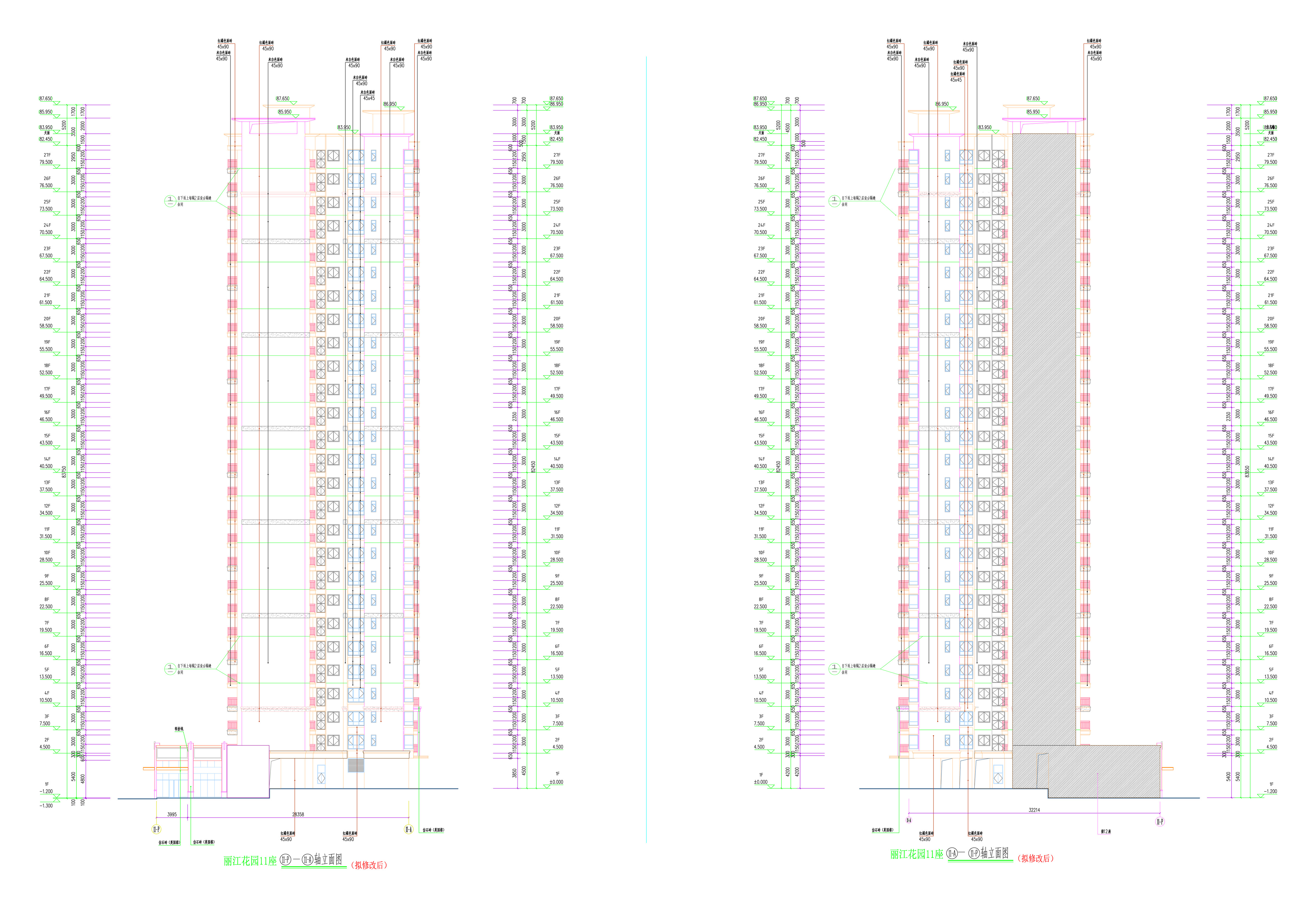 麗江花園11座修改內容如下:腰線由原來的每兩層設一個改為每四層設一個,取消多余空調飄板,6-12軸屋面構架修改,兩飄窗間空調板修改,取消A交2軸、A交17軸空調板,屋頂樓梯補充窗。詳見附圖。