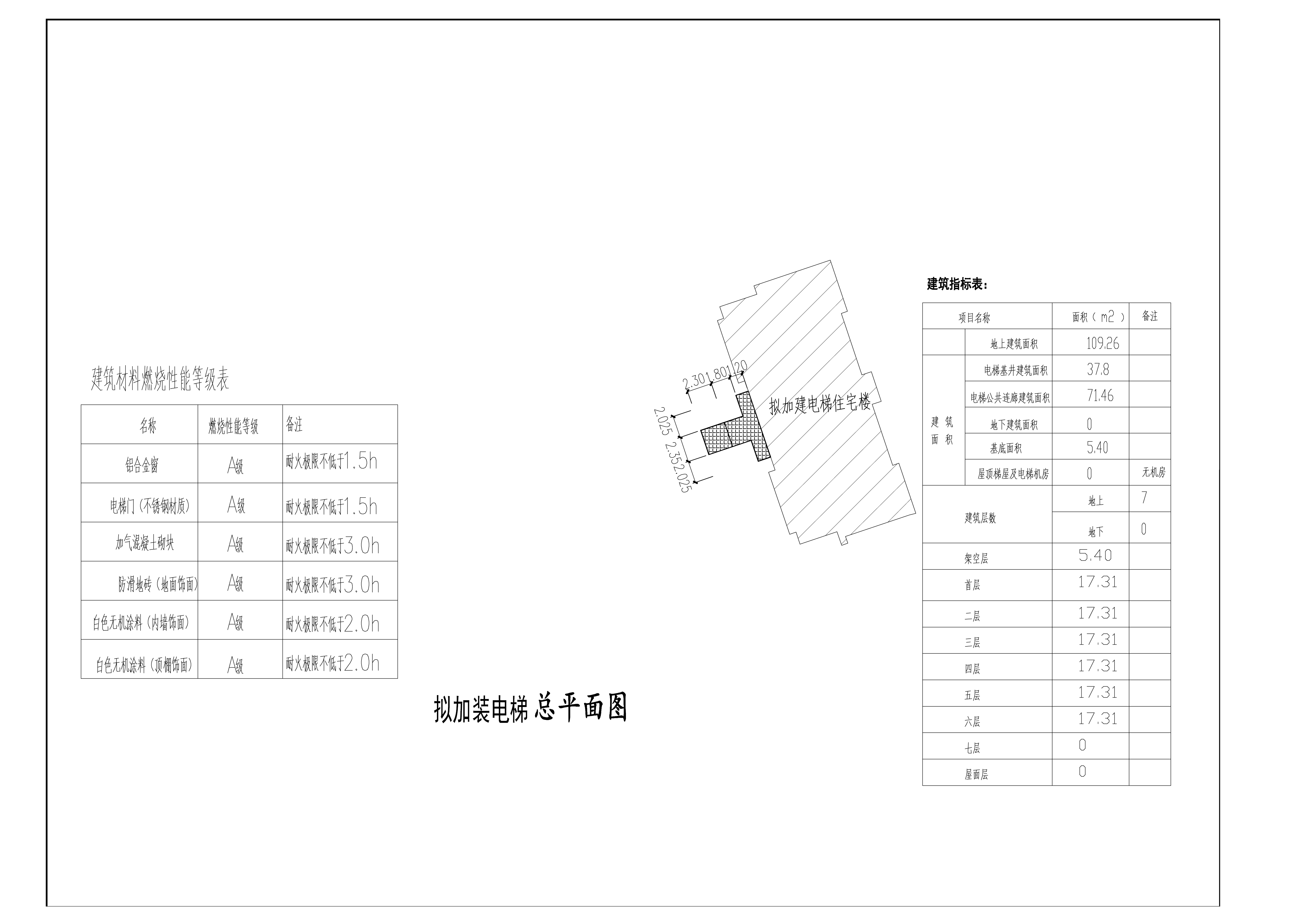 擬加裝電梯建筑占地面積5.4平方米,電梯及連廊總建筑面積109.26平方米,詳見附圖。