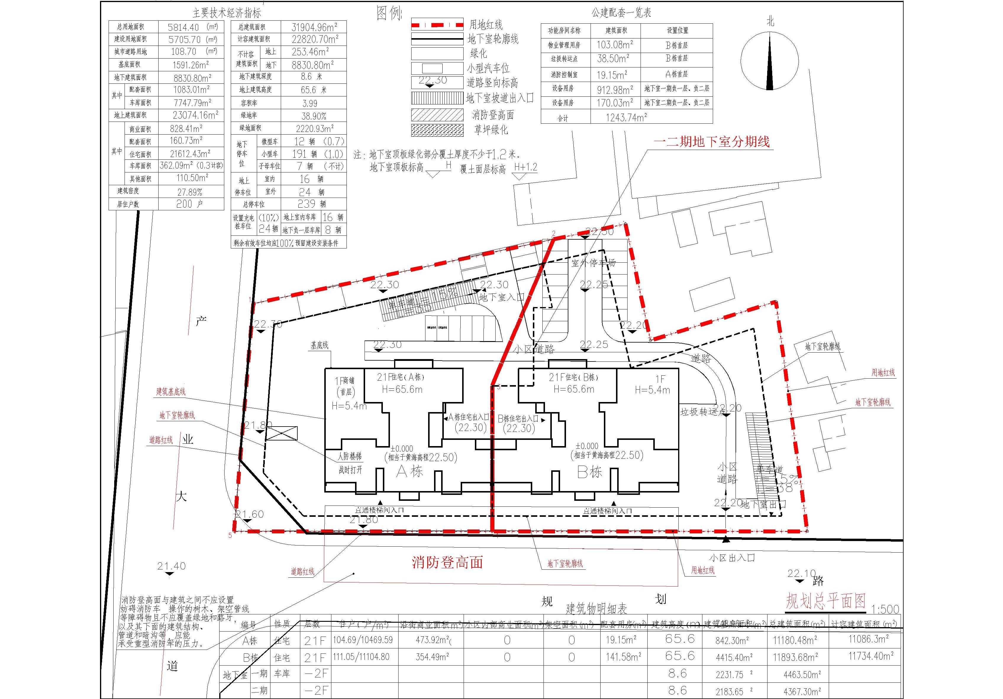 報來總平面調(diào)整方案,擬調(diào)整地下室分期范圍線及停車位數(shù),地下室分二期建設(shè),減少地下室及地面室外停車位,調(diào)整后指標(biāo):布置2棟21層商住樓,建筑高度65.6米,總用地面積5814.4平方米,建設(shè)用地5705.7平方米,總建筑面積31904.96平方米,地上總建筑面積23074.16平方米,計容面積22820.7平方米,地下不計容面積8830.8平方米,基底面積1591.26平方米,容積率3.99,建筑密度27.89%,綠地率38.9%,綠地面積2220.93平方米,戶數(shù)200戶,車位239個(地下199個,地上室內(nèi)16,室外24)。配套垃圾轉(zhuǎn)運點、物業(yè)管理用房、消防控制室、設(shè)備用房。