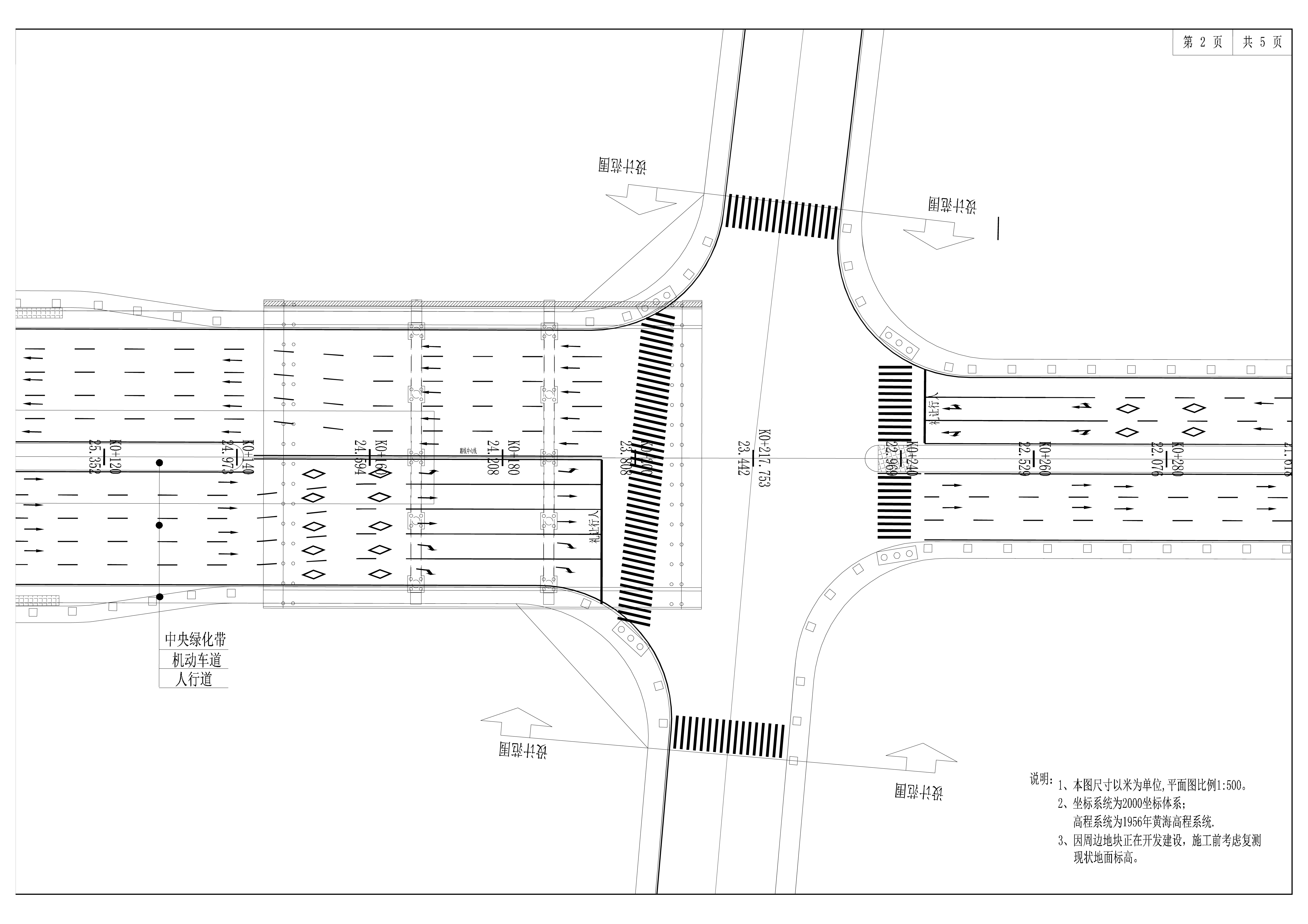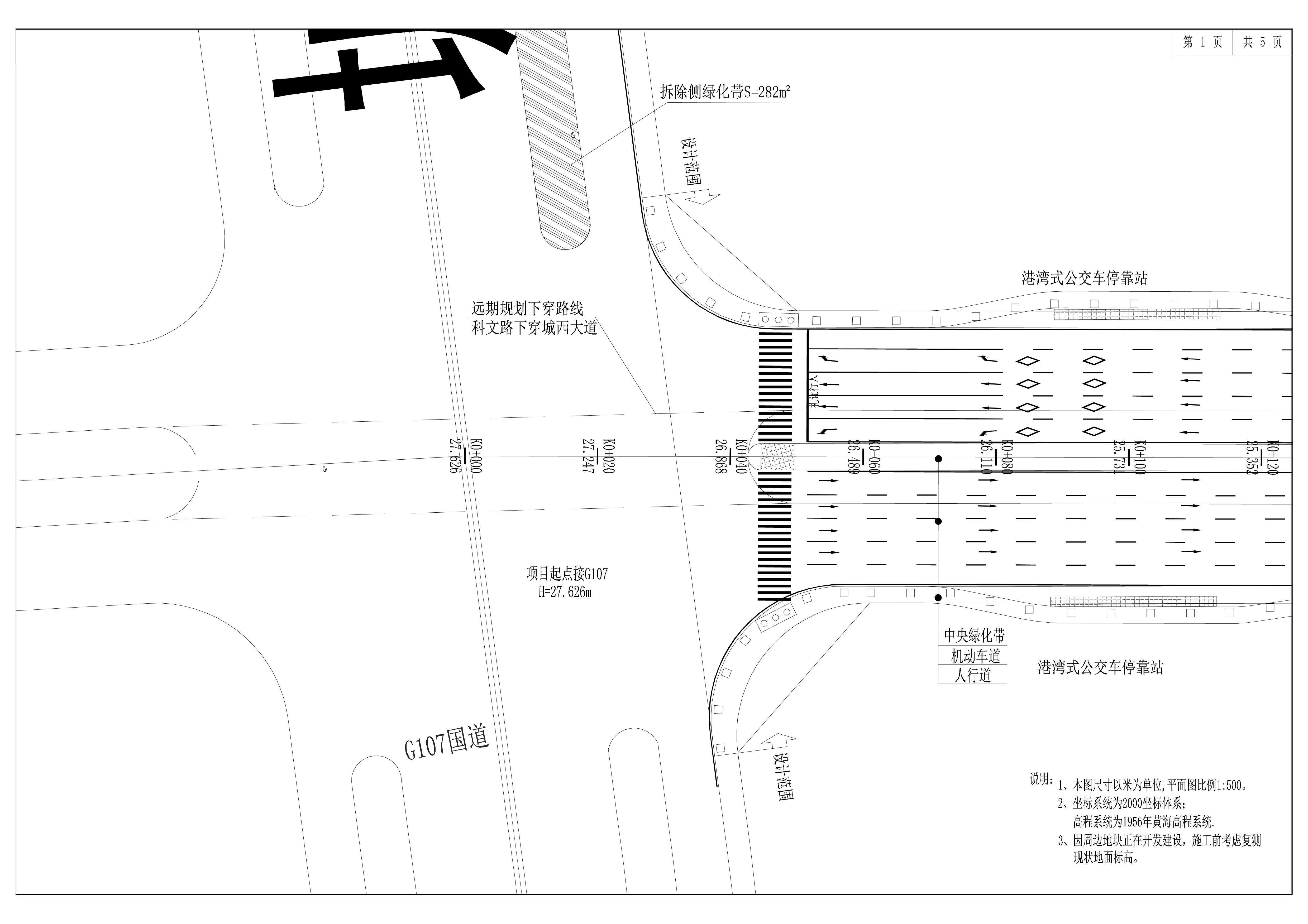 中以科技產(chǎn)業(yè)園基礎(chǔ)配套設(shè)施項(xiàng)目-科文路建設(shè)工程本項(xiàng)目道路設(shè)計(jì)標(biāo)準(zhǔn)分別為:道路呈南北走向,長(zhǎng)約0.723公里,設(shè)計(jì)等級(jí)為城市次干路,設(shè)計(jì)時(shí)速為40Km/h,道路紅線(xiàn)寬30~44m,雙向 4~8車(chē)道,采用瀝青混凝土路面。44m道路橫斷面為2.5m人行道+17.5m車(chē)行道+4m綠化帶+17.5m車(chē)行道+2.5m人行道,30m道路橫斷面為2.5m人行道+10.5m車(chē)行道+4m綠化帶+10.5m車(chē)行道+2.5m人行道。 道路等級(jí)為城市次干路,道路紅線(xiàn)寬度30-44米,道路長(zhǎng)度約723米,河濱路與科文路為T(mén)字路口進(jìn)行相交,交叉口路面標(biāo)高(黃海高程)15.753米,交叉口雨水管底標(biāo)高13.395米,交叉口污水管底標(biāo)高10.497米。G107國(guó)道與科文路相交形式為十字路口,交叉口路面標(biāo)高27.626米,交叉口污水管底標(biāo)高22.253米。