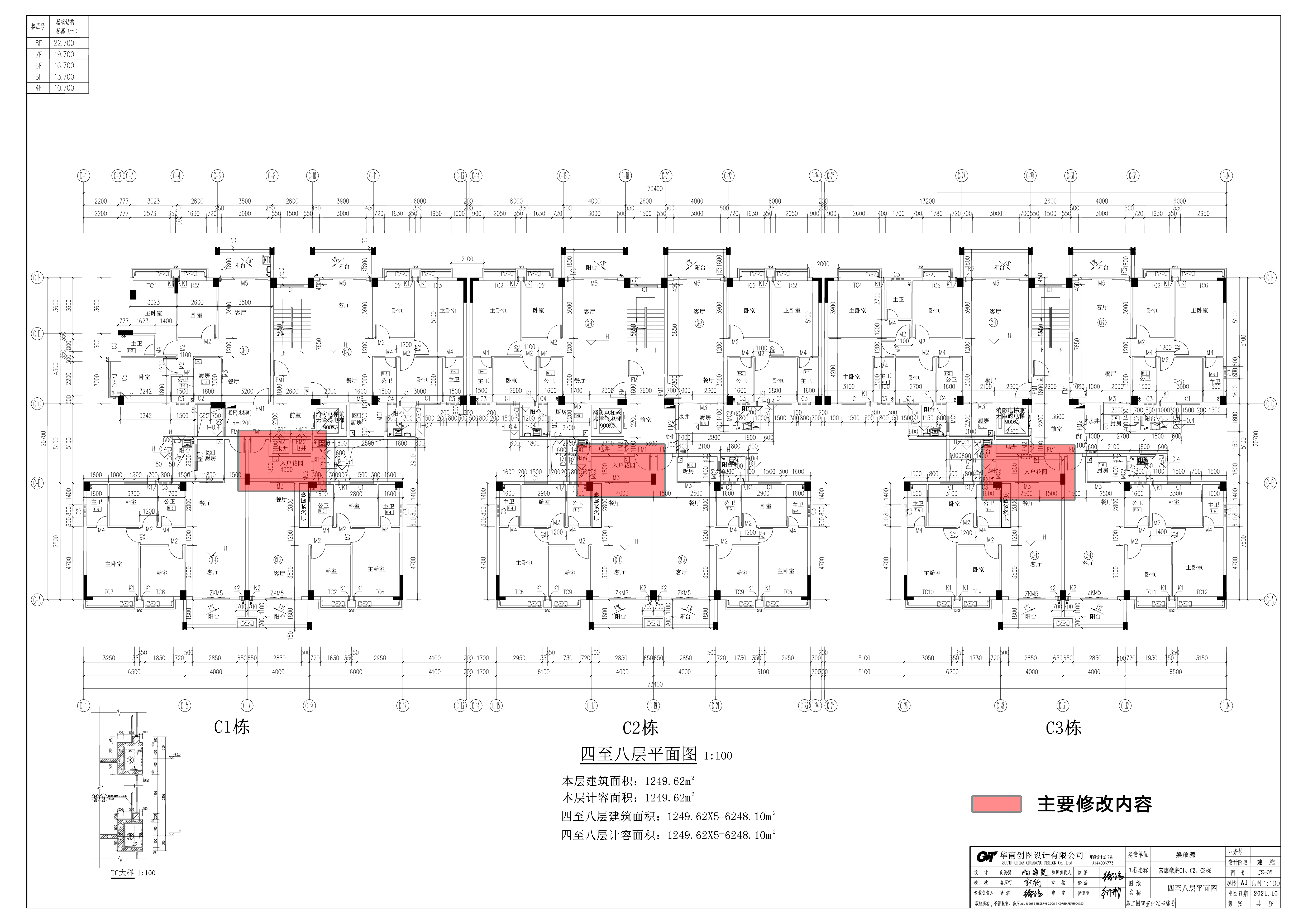 富康豪庭C1、C2、C3棟、D1、D2、D3棟、B棟及地下車庫(kù)建設(shè)工程設(shè)計(jì)方案調(diào)整后指標(biāo)為:C1、C2、C3棟調(diào)整后指標(biāo):建筑占地面積1499.71平方米,總建筑面積14619.57平方米,總計(jì)容建筑面積14619.57平方米,地上建筑11層,裙樓2層,建筑高度35.95米,首層層高5.4米,二層層高3.4米,標(biāo)準(zhǔn)層層高3米。住宅建筑面積11680.83平方米,商業(yè)面積2692.35平方米,公共配套設(shè)施188.44平方米,住宅戶數(shù)108戶。D1、D2、D3棟調(diào)整后指標(biāo):建筑占地面積1697.56平方米,總建筑面積15019.54平方米,總計(jì)容建筑面積15019.54平方米,地上建筑11層,裙樓1層,建筑高度35.55米,首層層高5.4米,標(biāo)準(zhǔn)層層高3米。住宅建筑面積13532.86平方米,商業(yè)面積1108.85平方米,公共配套設(shè)施352.07平方米,住宅戶數(shù)120戶。B棟調(diào)整后指標(biāo):建筑占地面積947.79平方米,總建筑面積5770.52平方米,總計(jì)容建筑面積5770.52平方米,地上建筑11層,裙樓2層,建筑高度35.95米,首層層高5.4米,二層層高3.4米,標(biāo)準(zhǔn)層層高3米。住宅建筑面積3849.35平方米,商業(yè)面積1910.99平方米,住宅戶數(shù)36戶。地下車庫(kù)調(diào)整后指標(biāo):總建筑面積8294.06平方米,不計(jì)容建筑面積8294.06平方米,地下建筑深度4.3米,地下車庫(kù)建筑1層,層高4.3米。地下室停車位262個(gè)。調(diào)整內(nèi)容主要為:D1、D2、D3棟的二至十一層平面圖D1-3、D2-3、D3-3戶型的廚房修改為入戶花園;C1、C2、C3棟三至十一層平面圖C1-3、C2-4、C3-4戶型的廚房修改為入戶花園;地下車庫(kù)的配電房由原來的D1棟負(fù)一層改在C2、C3棟負(fù)一層,并修改了發(fā)電機(jī)房的位置;B棟三至十一層平面圖B-4戶型的廚房修改為入戶花園;調(diào)整后指標(biāo)與上一版批出方案無變化。
