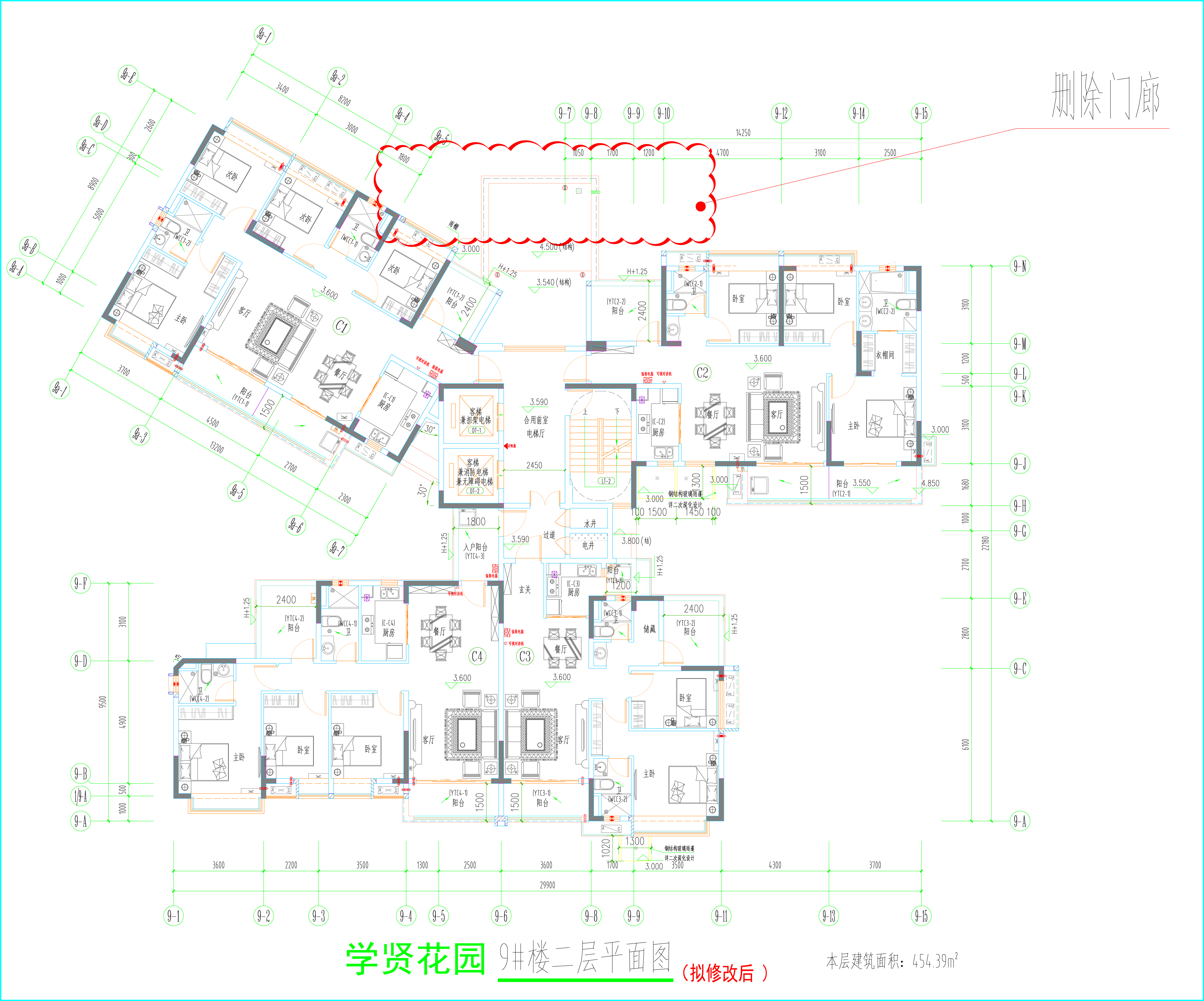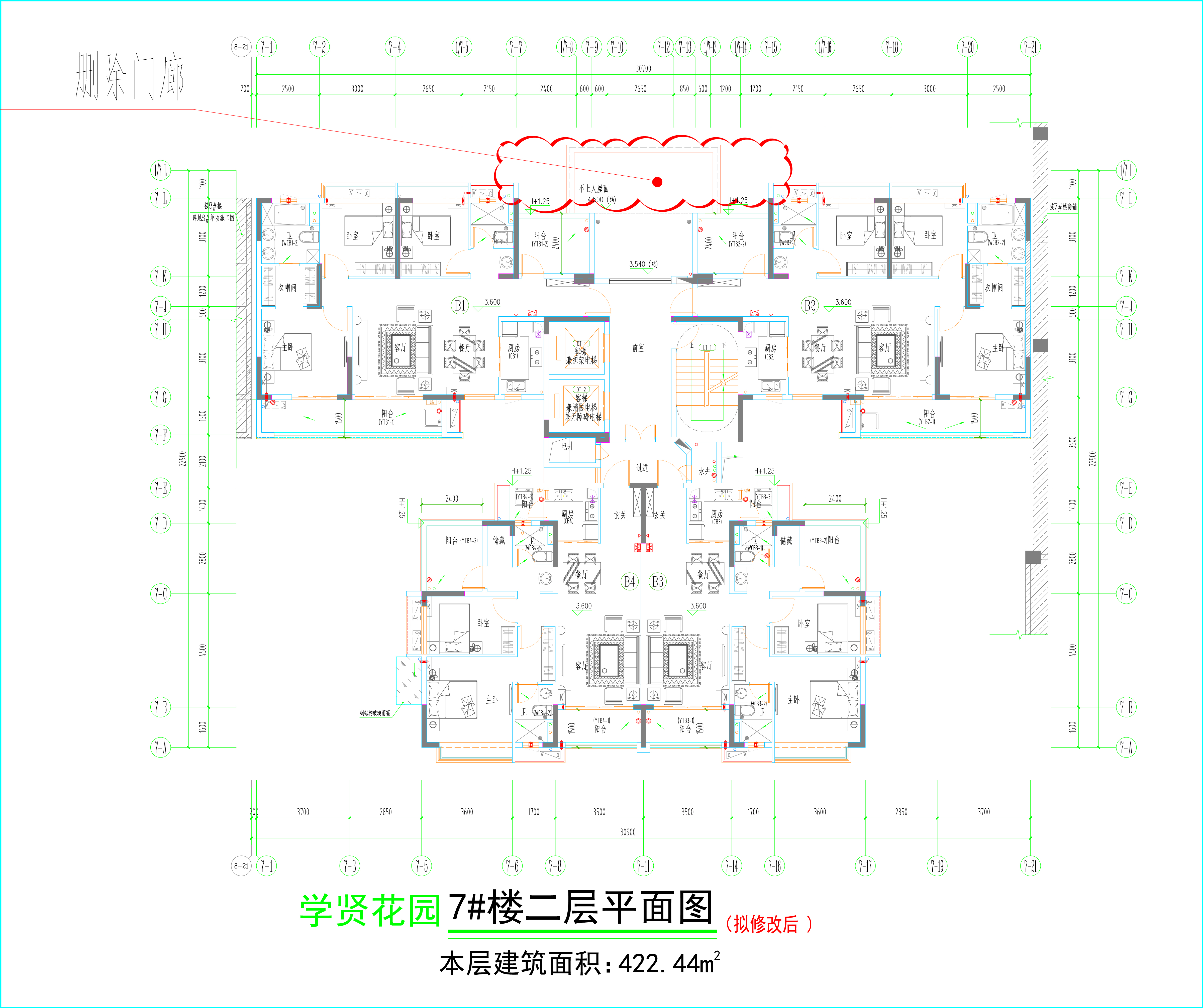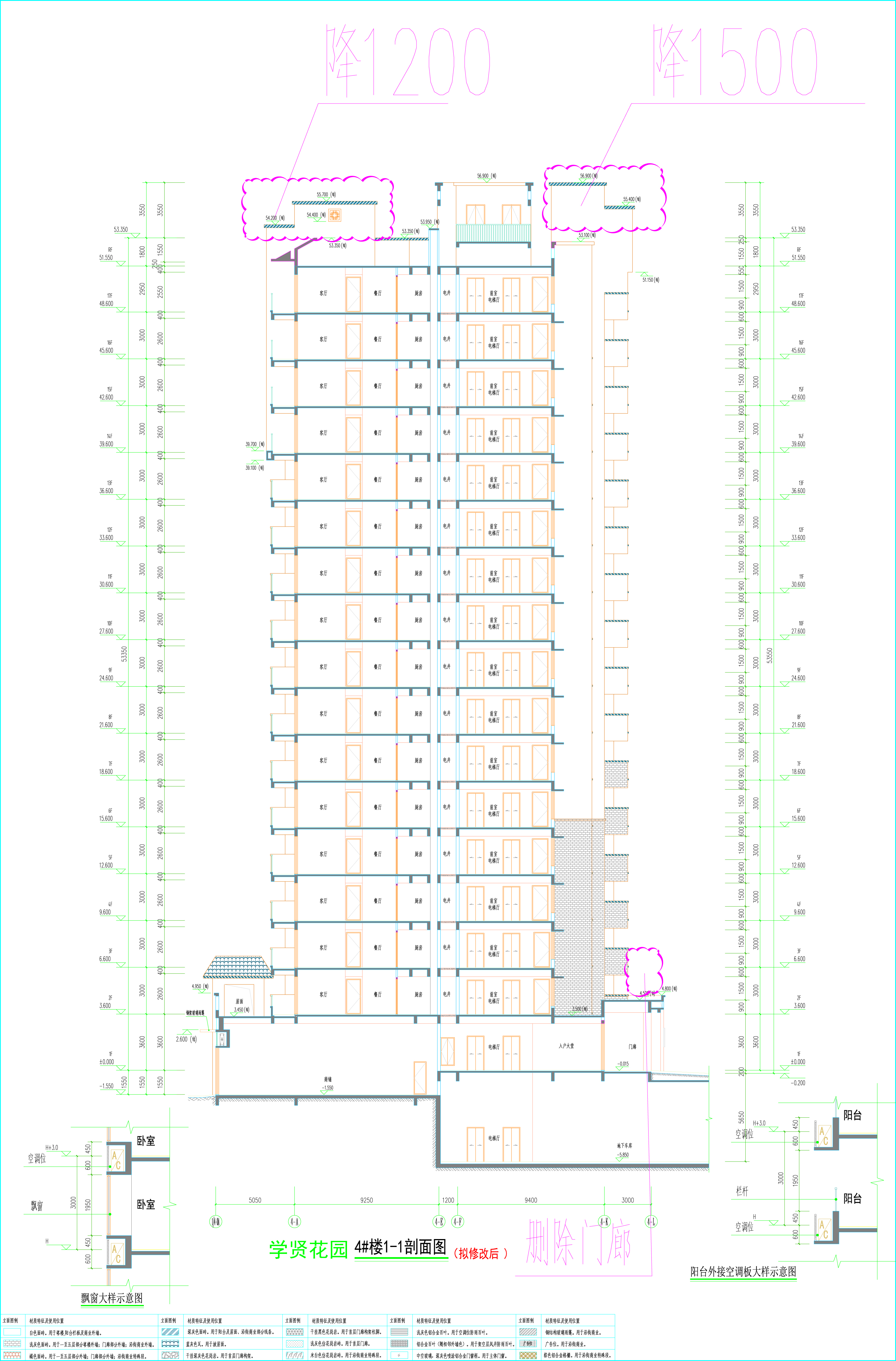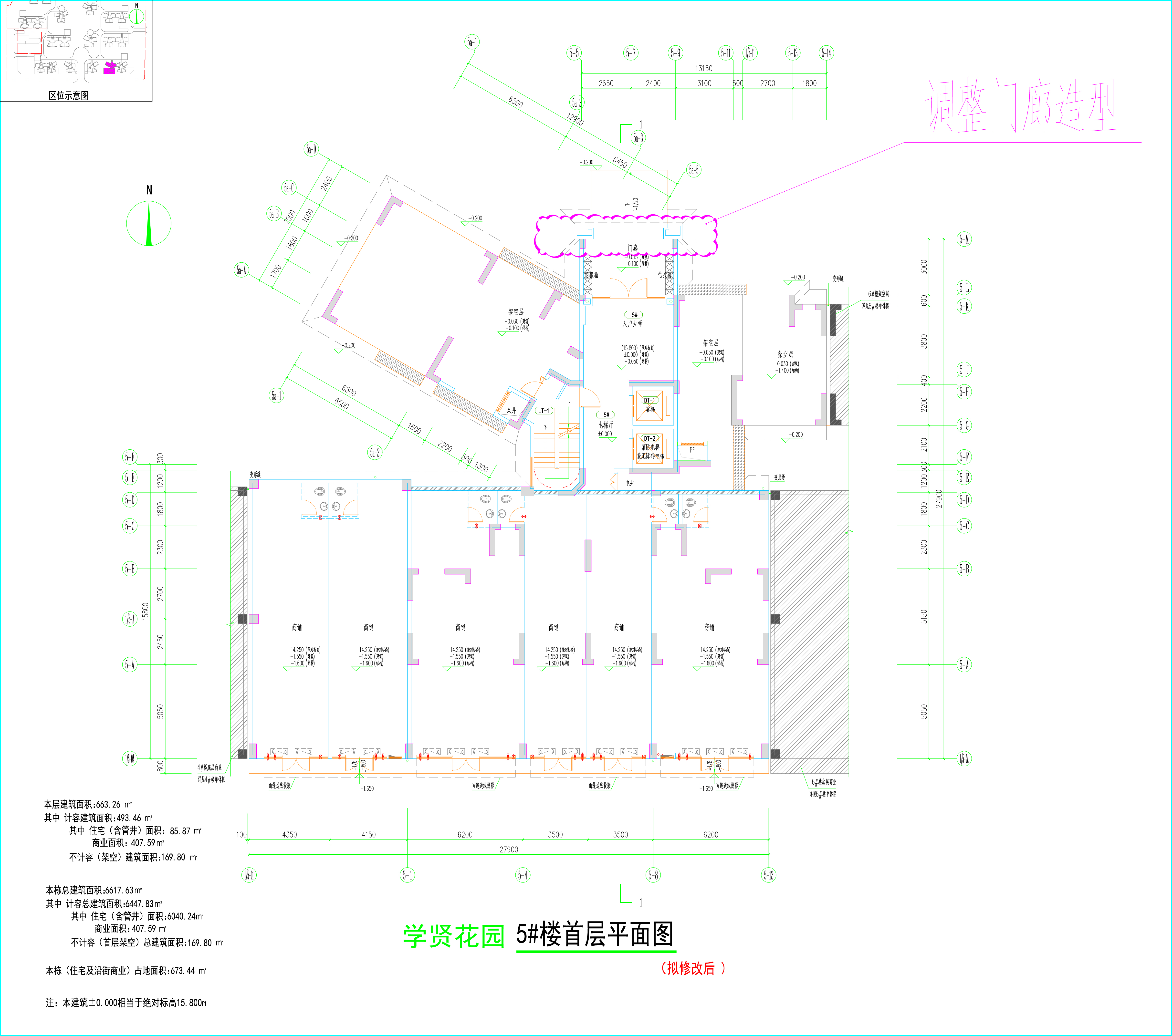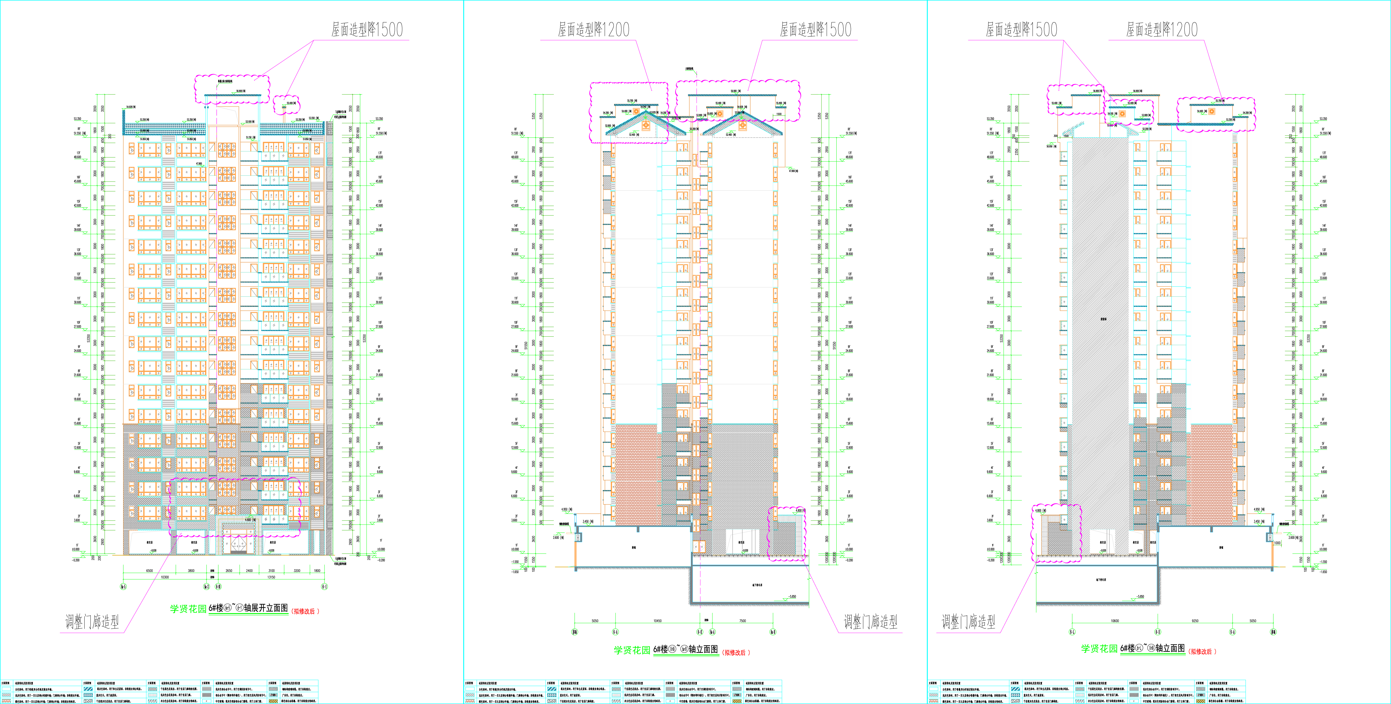 擬修改內(nèi)容主要有:刪除首層入口造型柱,屋頂造型局部降低高度;詳見附圖。