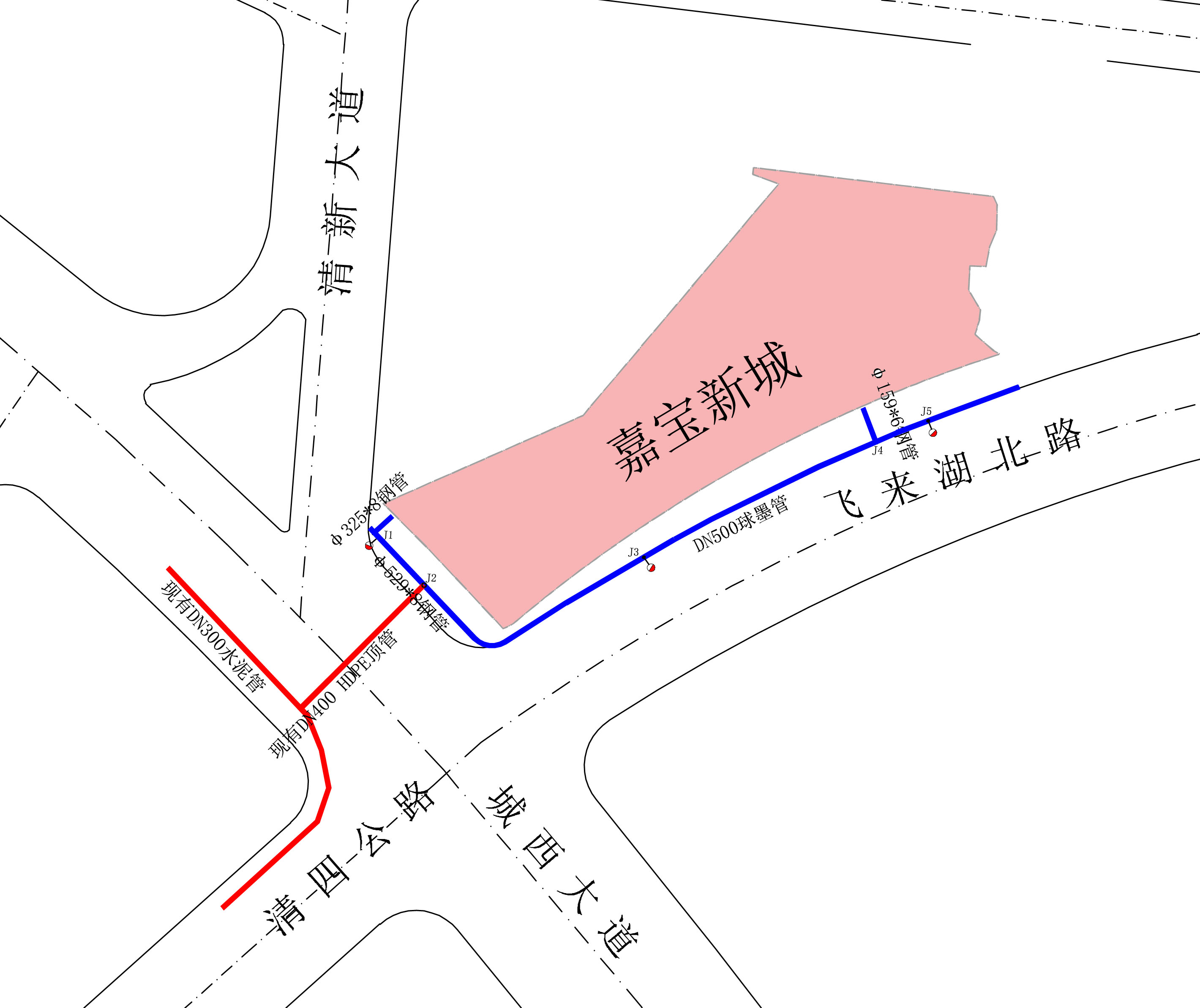 新建接入嘉寶新城給水管線,現(xiàn)按程序進(jìn)行批前公示,路徑方案詳見附圖。