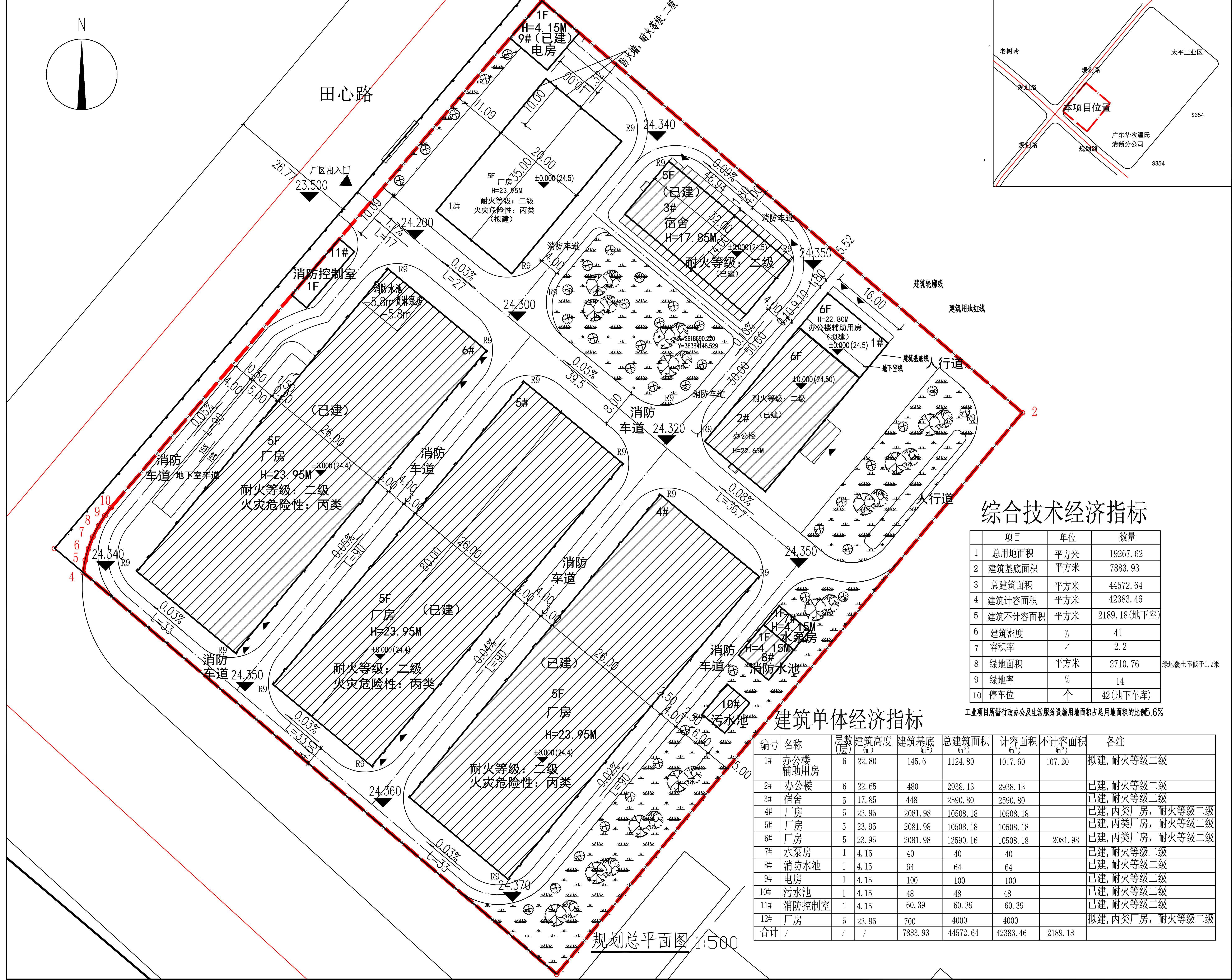 一、現(xiàn)建設(shè)單位申請(qǐng)?jiān)黾右粭?層辦公樓輔助用房貼鄰原已建6層辦公樓東側(cè),增加1棟5層丙類廠房,已建門衛(wèi)改為消防控制室,取消地面室外停車位,其余建筑布局不變,總建筑面積、計(jì)容建筑面積、基底面積相應(yīng)調(diào)整,調(diào)整后行政辦公及生活服務(wù)設(shè)施用地占總用地面積比例5.6%。二、調(diào)整后指標(biāo):總用地面積19261.46平方米,總建筑面積44572.64平方米,總計(jì)容建筑面積42383.46平方米,建筑基底面積7883.93平方米,容積率2.2,建筑密度41%,綠地率14%,綠地面積2710.76平方米,配套車位42個(gè)(地下室)。布置已建2#辦公樓、3#宿舍、4#5#6#廠房,7#8#9#10#11#配套用房;擬建1棟6層辦公樓輔助用房,1棟5層丙類廠房。