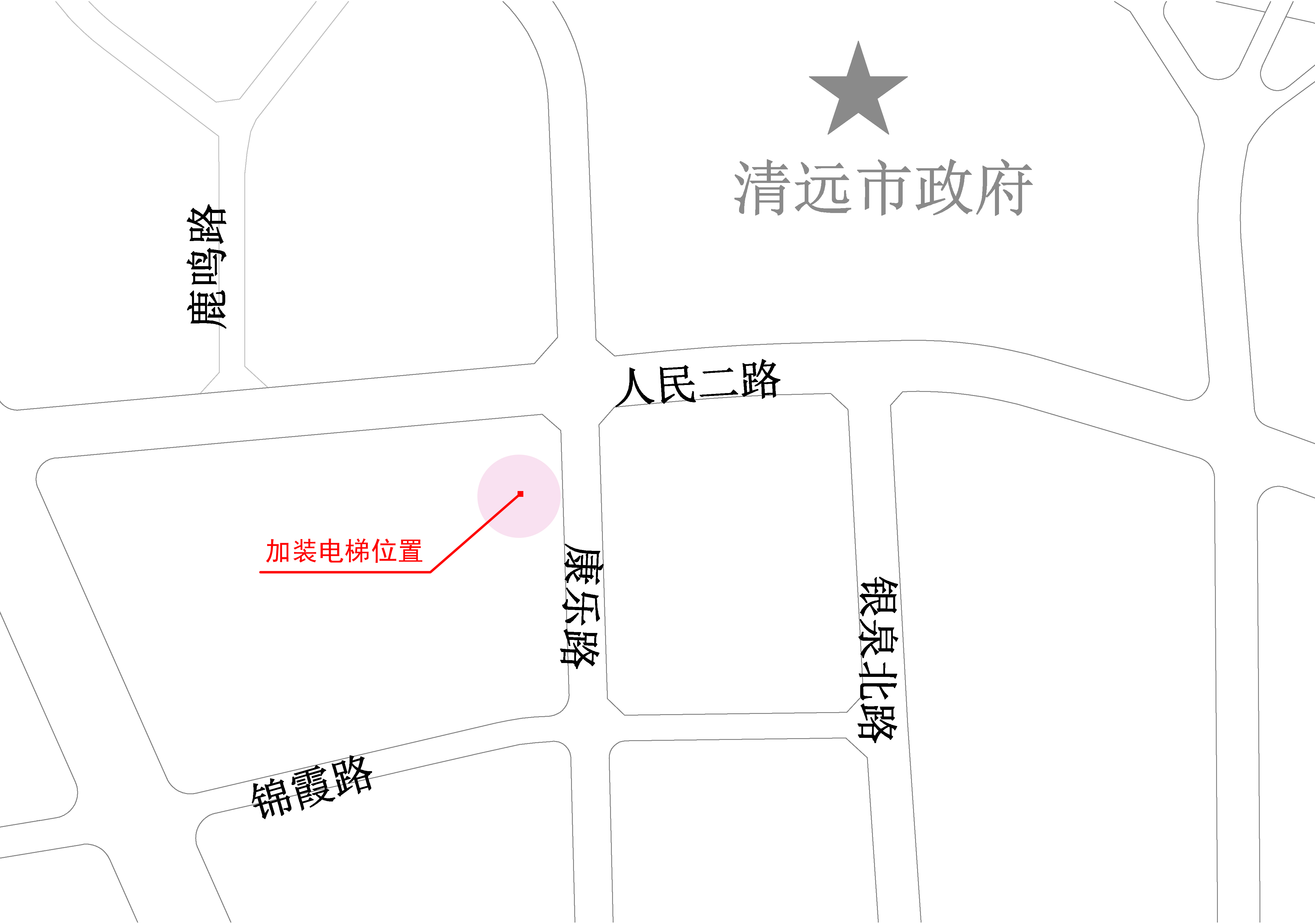 清遠(yuǎn)市新城人民二路公路大廈6棟B梯加裝電梯建設(shè)工程(含臨時建設(shè))規(guī)劃許可證批前公示