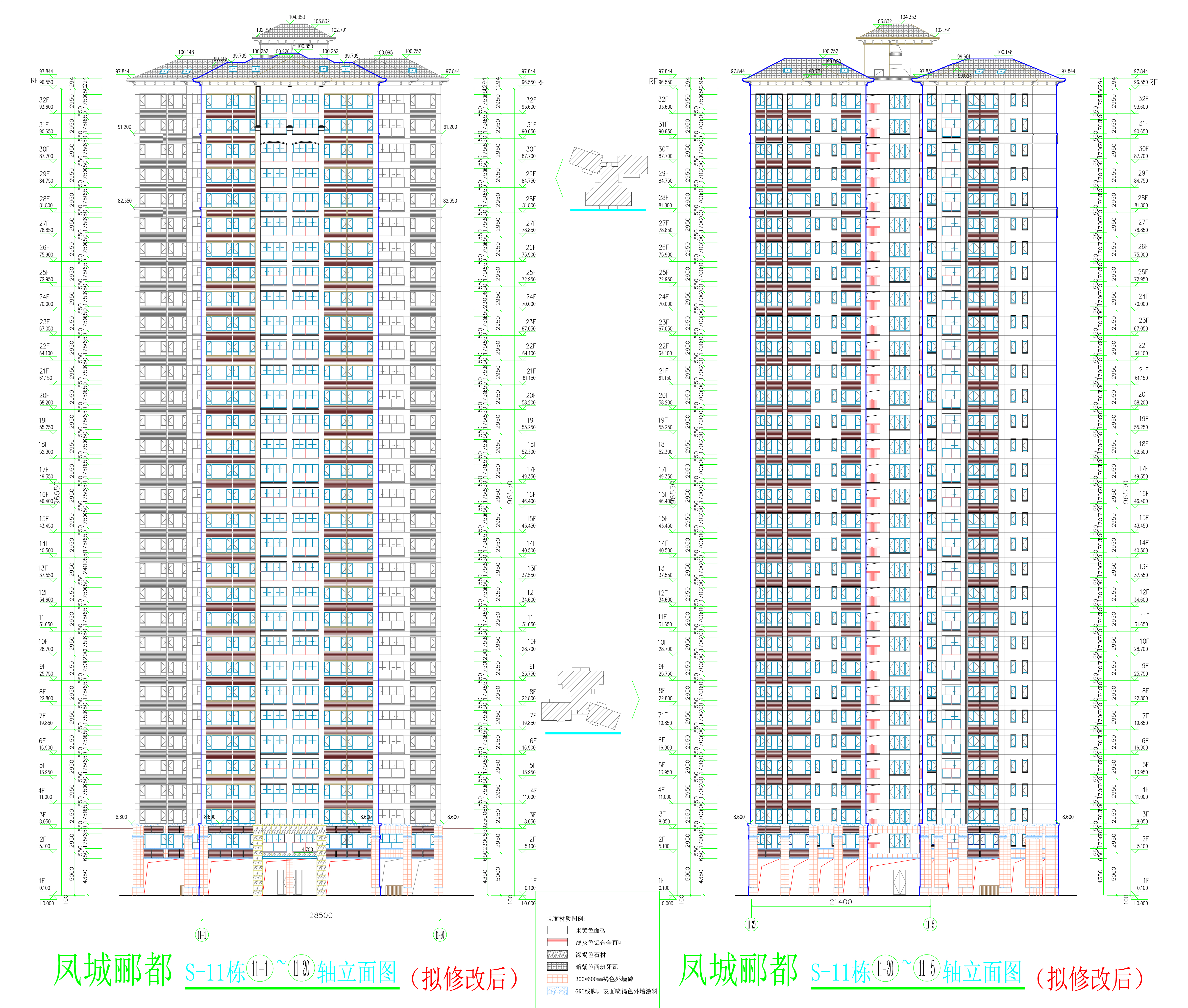 報來方案修改,主要修改內(nèi)容如下:一、S-11、S-12棟首層原窗改為門聯(lián)窗,增加無障礙平坡入口,增加輕鋼結(jié)構(gòu)雨篷;二、S-11棟首層11-18交11-G軸樓梯調(diào)整;三、 S-11、S-12棟二層~三十二層11-7交11-H軸電梯廳欄桿改為窗,兩側(cè)墻體調(diào)整為1100mm寬;四、S-11棟二層~三十二層11-13交11-F軸廚房飄窗調(diào)整為平開窗;五、S-11、S-12棟二層~三十二層前室門調(diào)整為可雙向開啟;六、S-11、S-12棟二層~三十二層入戶花園門開啟方向調(diào)整為向外開啟;七、S-11棟二層~三十二層J-1、E-1-L、E-1-R戶型廚房門調(diào)整,J-2戶型客臥門調(diào)整,S-12棟二層~三十二層J-3、J-4、E-2-L、E-2-R戶型廚房門調(diào)整;八、S-11、S-12棟二層、三層11-5~11-11交11-K軸增加結(jié)構(gòu)梁和GRC線腳;九、S-11、S-12棟入口處門頭造型米黃色石材調(diào)整為深褐色石材,并取消三、四層石材;十、S-11、S-12棟首層、二層平立面米黃色石材調(diào)整為300X600外墻磚,GRC線腳表面噴外墻涂料;具體詳見附圖。