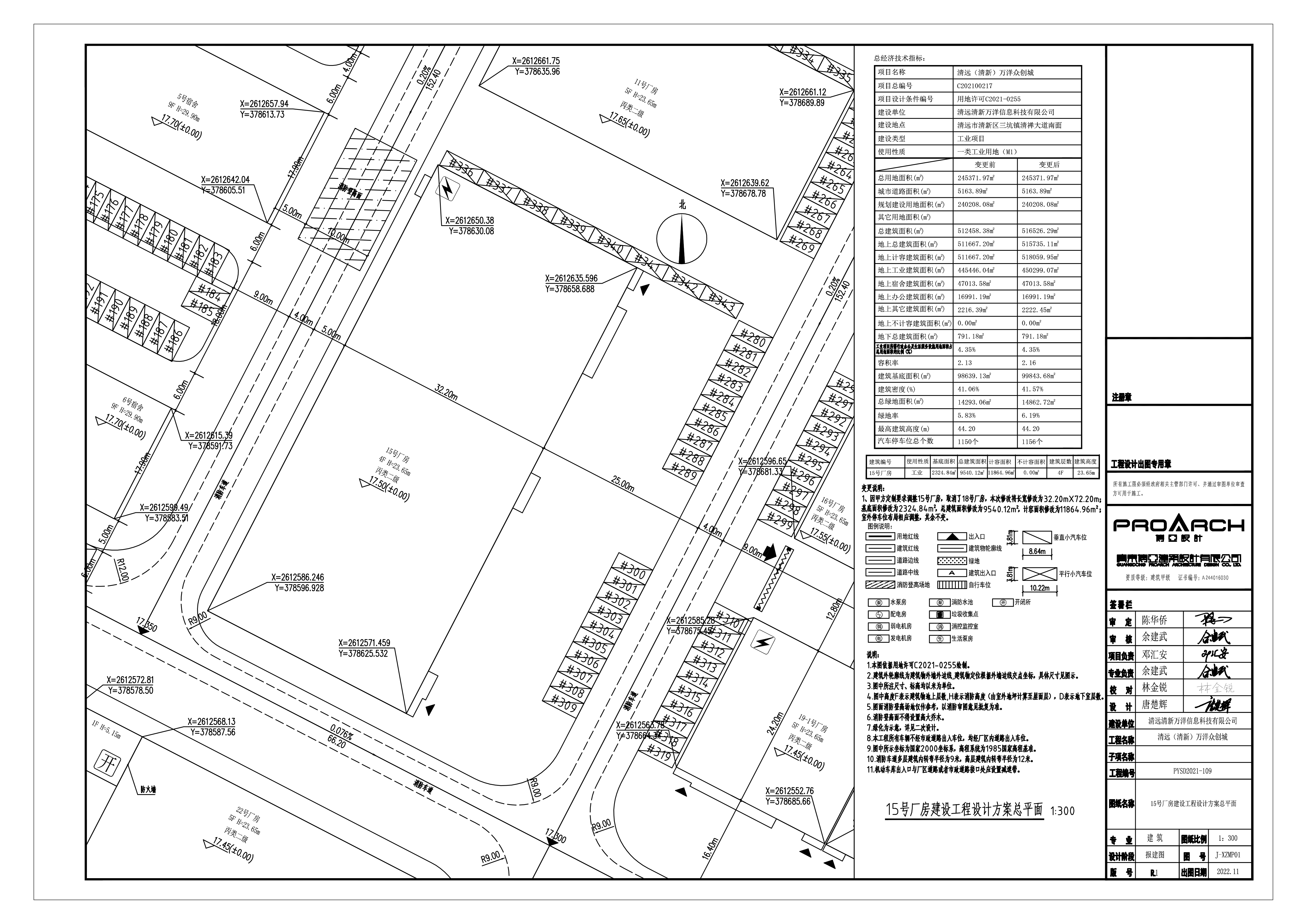 1、報(bào)來(lái)清遠(yuǎn)(清新)萬(wàn)洋眾創(chuàng)城-15#、17#、19-1#、19-2#廠房方案,指標(biāo)如下:①15#廠房建筑基底面積2324.84平方米,總建筑面積9540.12平方米,總計(jì)容建筑面積11864.96平方米,層數(shù)4層,建筑高度23.65米;②17#廠房建筑基底面積1166.44平方米,總建筑面積6097.88平方米,總計(jì)容建筑面積6097.88平方米,層數(shù)5層,建筑高度23.65米;③19-1#廠房建筑基底面積580.80平方米,總建筑面積2971.24平方米,總計(jì)容建筑面積2971.24平方米,層數(shù)5層,建筑高度23.65米;④19-2#廠房建筑基底面積774.40平方米,總建筑面積3938.42平方米,總計(jì)容建筑面積3938.42平方米,層數(shù)5層,建筑高度23.65米。2、因指標(biāo)變更,相應(yīng)更新總平面的總經(jīng)濟(jì)技術(shù)指標(biāo):總用地面積245371.97平方米,其中規(guī)劃建設(shè)用地面積240208.08平方米,總建筑面積516526.29平方米,地上總建筑面積515735.11平方米,地上計(jì)容面積518059.95平方米,地下總建筑面積791.18平方米,容積率2.16,基底面積99843.68平方米,建筑密度41.57%,綠地率6.19%,綠地面積14862.72平方米,室外停車位1156個(gè)。