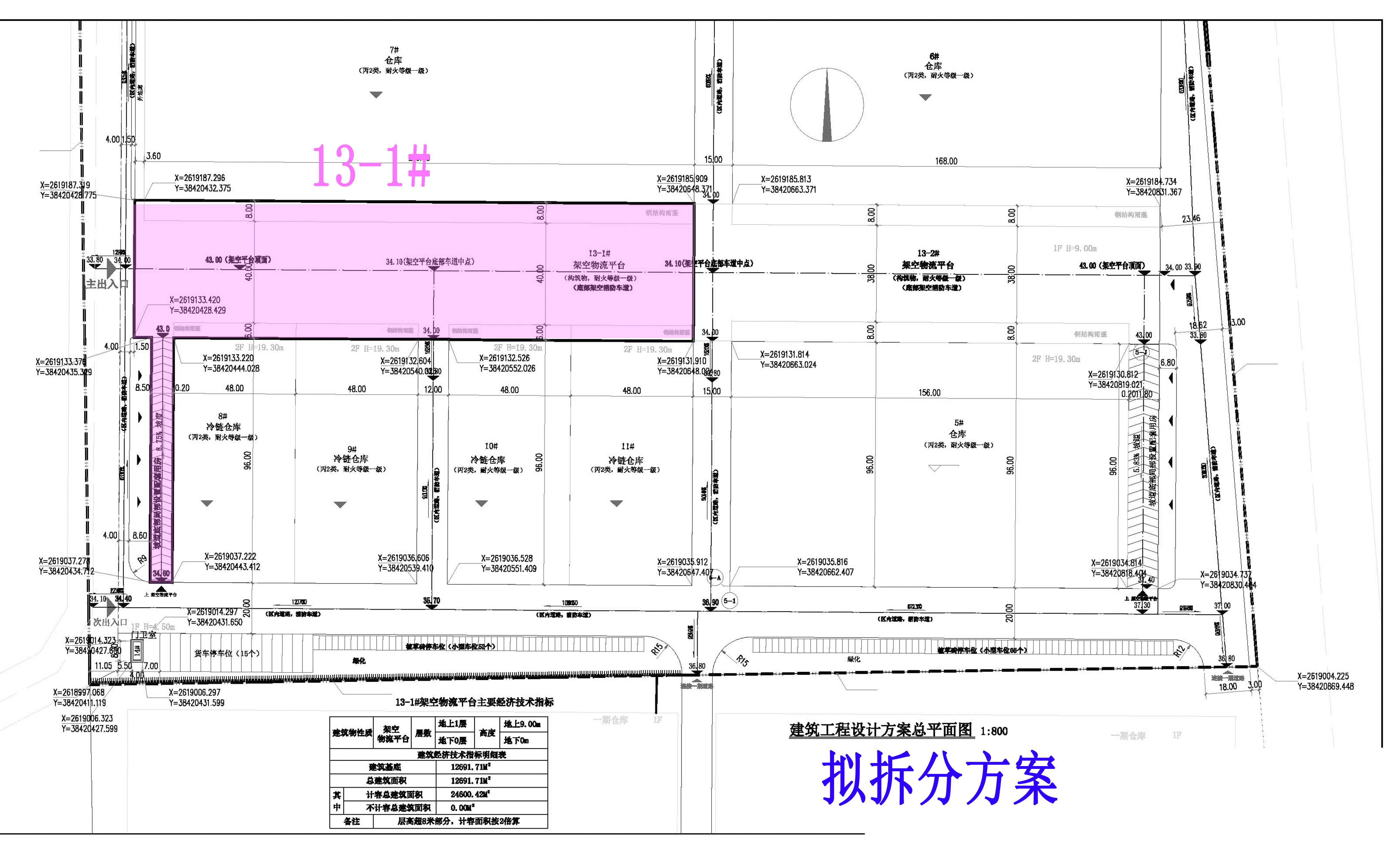 為加快建設(shè)工程進度、盡快投入使用,建設(shè)單位將原批出的13#架空物流平臺拆分為13-1#架空物流平臺(13-1軸至13-23軸)和13-2#架空物流平臺(13-23軸至13-41軸)兩個單體和兩個《建設(shè)工程規(guī)劃許可證》,拆分后,13-1#架空物流平臺建筑面積12691.71平方米,計容面積24600.42平方米;13-2#架空物流平臺建筑面積11031.00平方米,計容面積20982.00平方米;兩棟建筑的指標之和與原13#架空物流平臺指標一致。 詳見附圖,現(xiàn)依法進行批前公示。