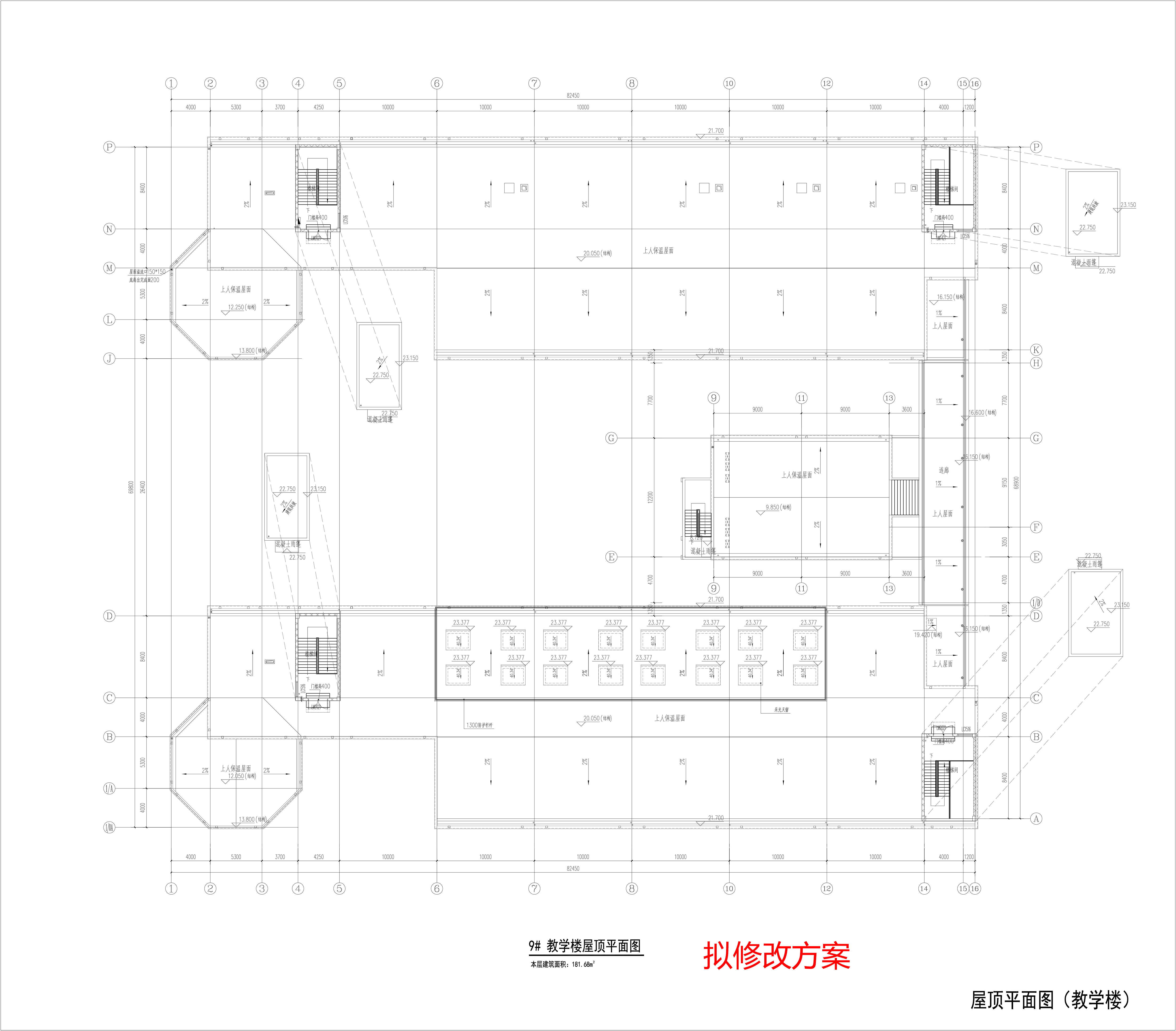 建設(shè)單位根據(jù)現(xiàn)場(chǎng)施工對(duì)廣東外語外貿(mào)大學(xué)附設(shè)清遠(yuǎn)外國(guó)語學(xué)校9#教學(xué)樓、23#連廊四進(jìn)行局部修改,主要修改內(nèi)容如下: 1、9#教學(xué)樓:五層平面6-14軸交C-D軸“物理實(shí)驗(yàn)室、儀器準(zhǔn)備室”調(diào)整為“美術(shù)室”;屋頂層平面6-12軸交C-D軸增加采光天窗及防護(hù)欄桿,不涉及面積變化。 2、23#連廊四:取消23#連廊四西北角與8#樓聯(lián)系部分的連廊,立面對(duì)應(yīng)平面修改;建筑面積由“62.17平方米”調(diào)整為“52.59平方米” 詳見附圖。